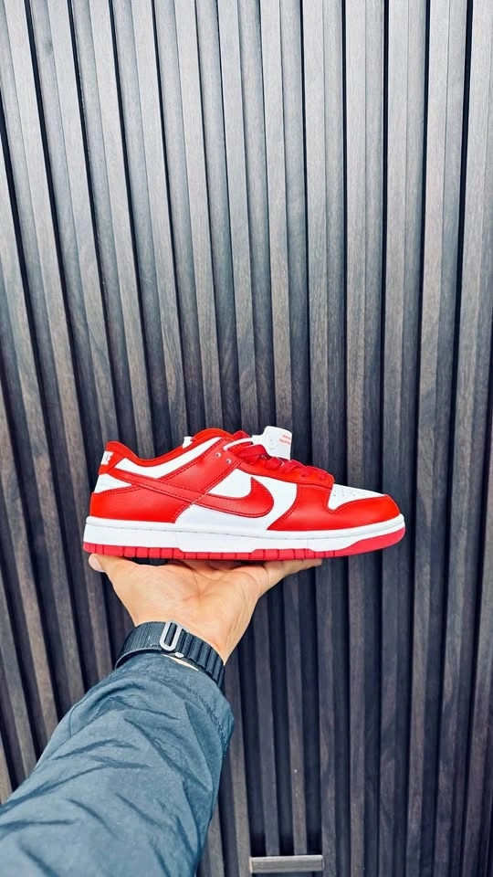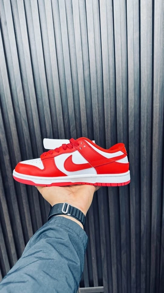 Bold red & white Dunks — clean, stylish, and super popular. Brand new, unworn, and premium quality. Available Sizes: 7, 8, 8.5, 9, 9.5. Feel free to message if you have any questions!