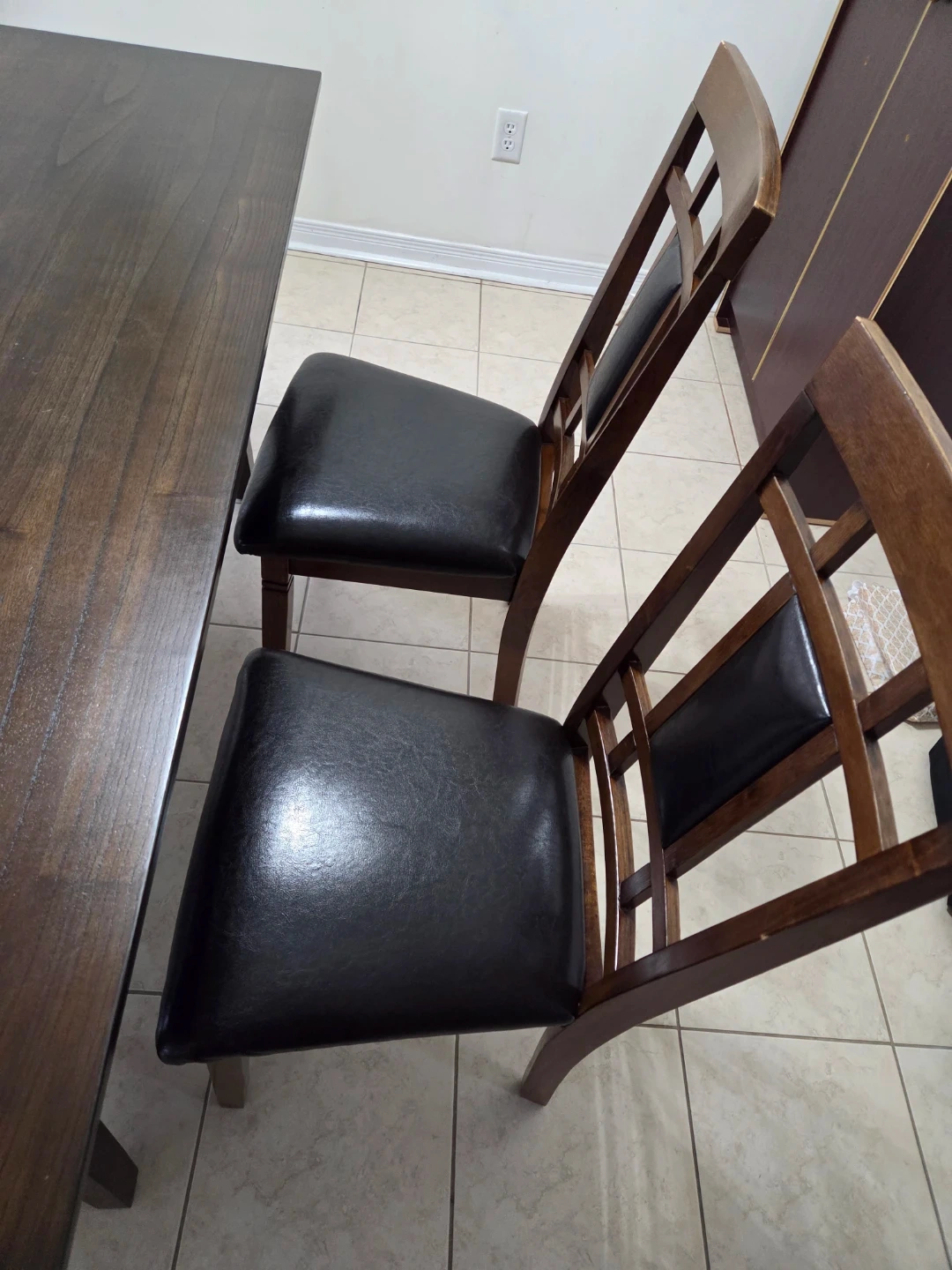 Wooden Dining Chairs with Black Upholstery (Set of 4)