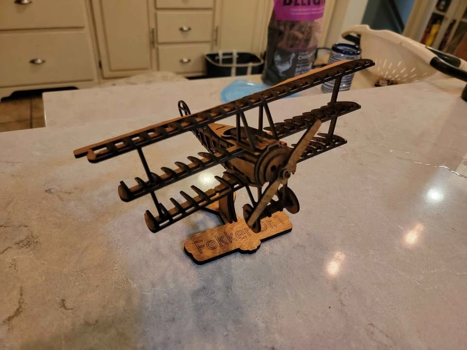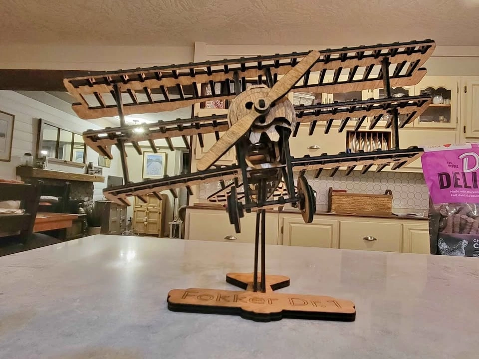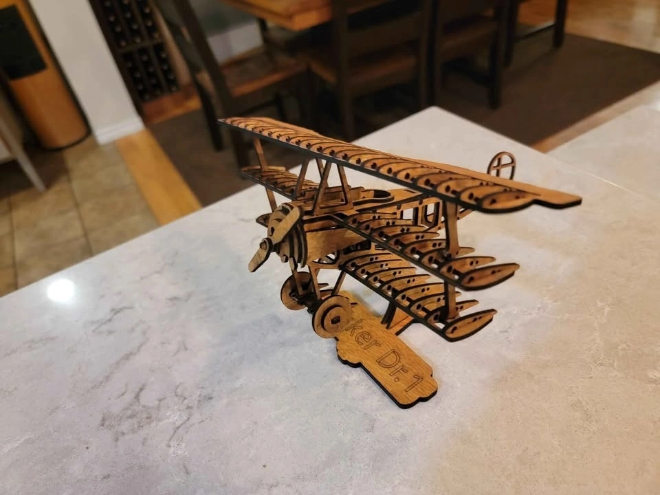 Laser Cut Wooden Fokker DR.1 Triplane Model