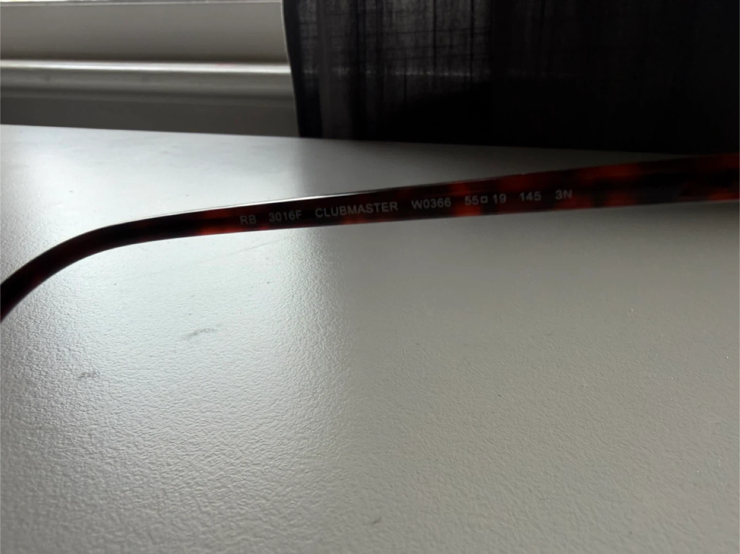 Ray-Ban Clubmaster sunglasses in a tortoiseshell pattern. Model RB 3016F W0366 51 19 145 3N. Includes original brown leather case. Classic style for everyday wear!