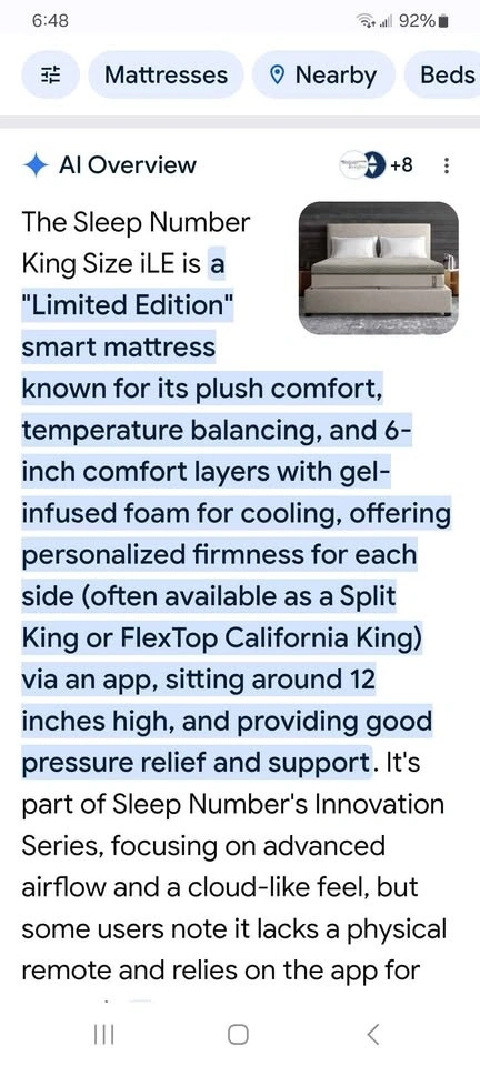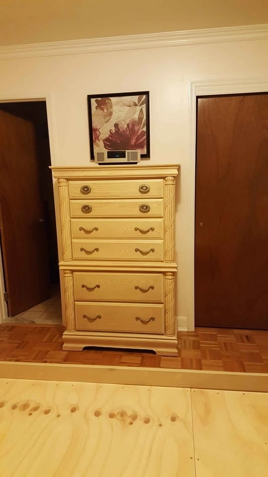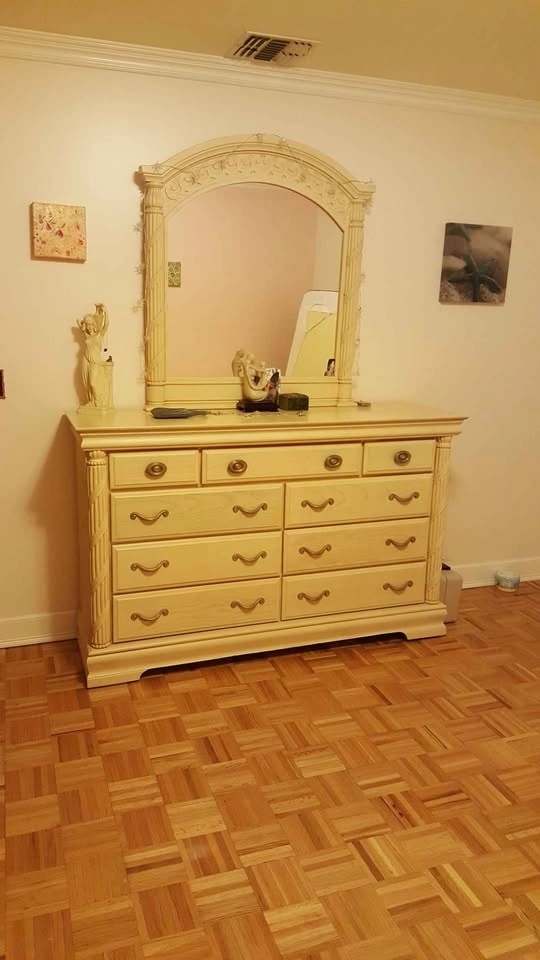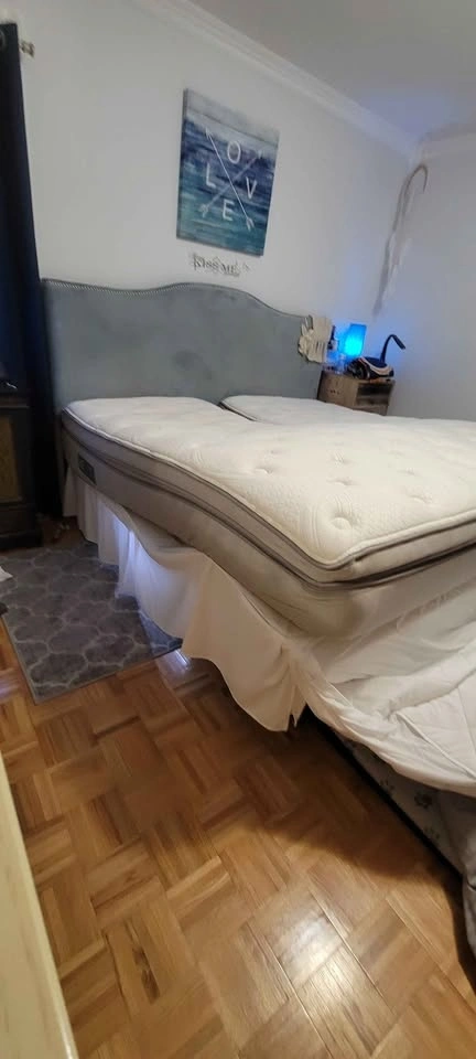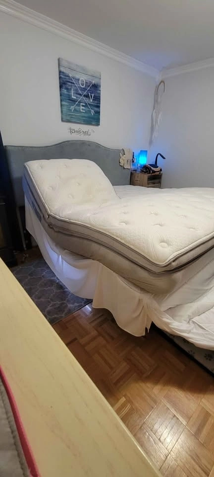Sleep Number flex top king size iLE model bed with fully adjustable frame. Includes remote control and app control. Also includes solid wood bedroom furniture in excellent condition. All available king size bedding is included: pillows, sheets, blanket, and mattress protector.