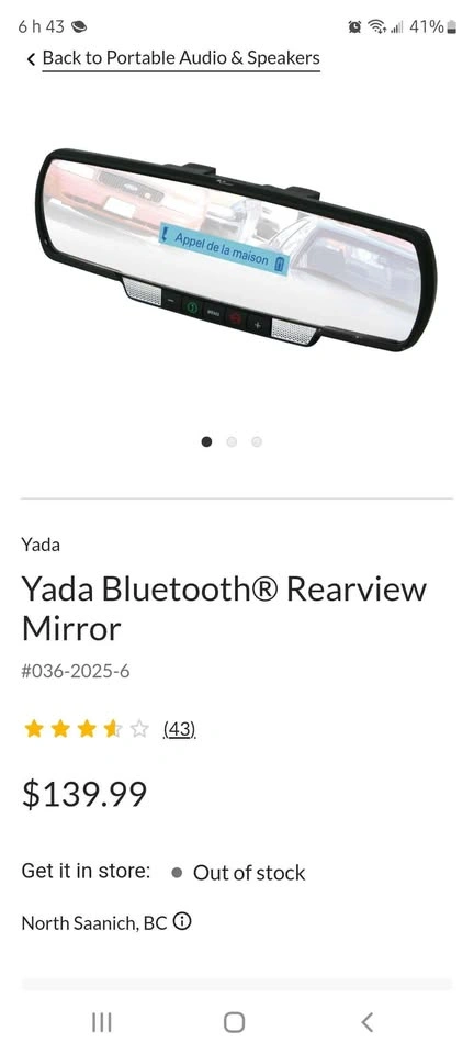 60Canadian tire Mirror with Bluetooth with nice back view you can answer and call. I bought this last year for my wife's car, now we don't use it. Original price $140 plus tax. I ask $100, is good condition, never dropped and no scratch.
