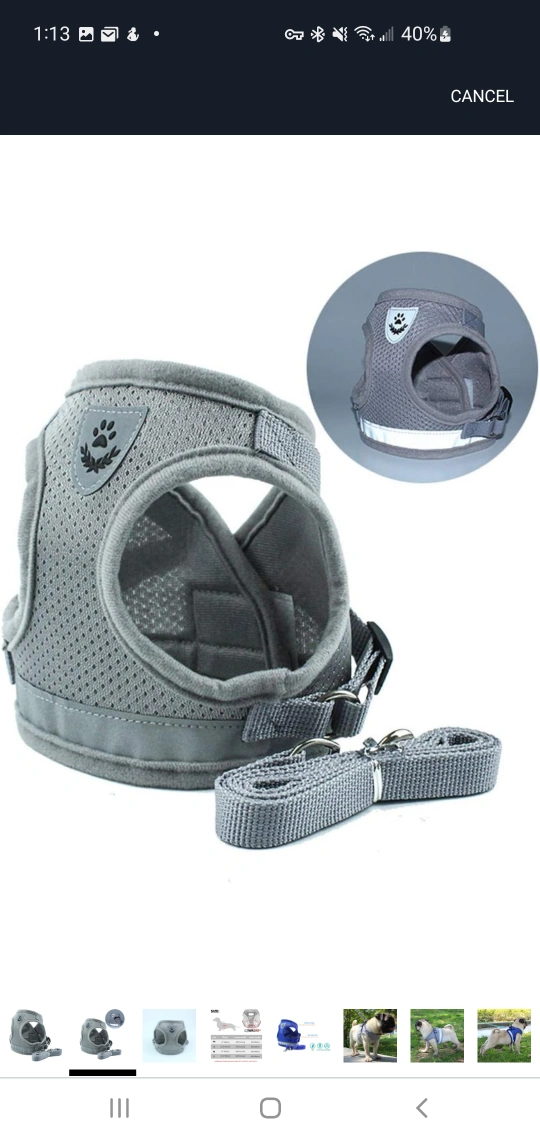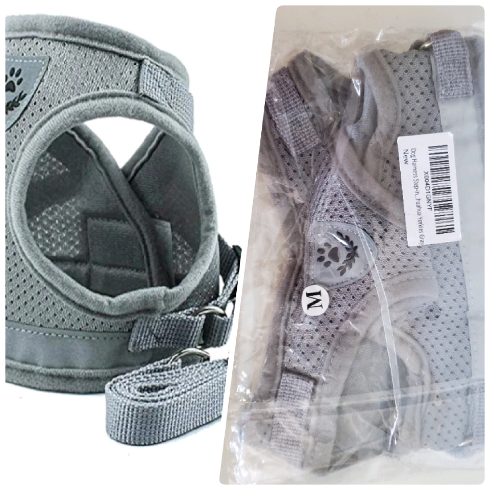 Gray Step-in Dog Mesh Vest Harness with Leash ...New