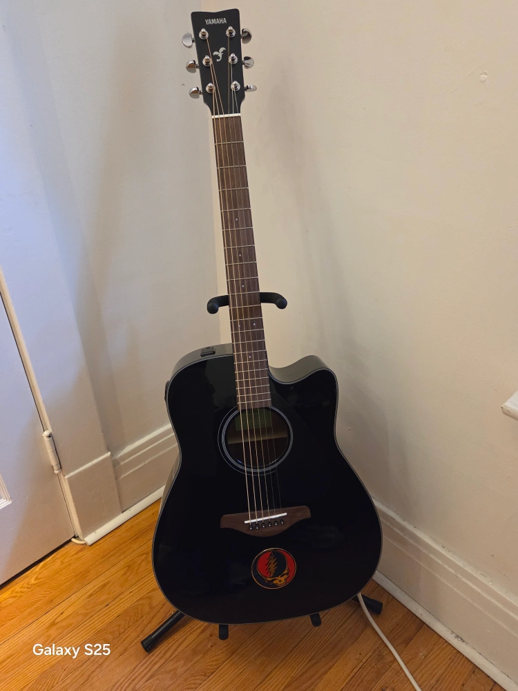 Selling a Yamaha acoustic guitar in black! It's in great shape and ready for a new home. Perfect for beginners or experienced players looking for a reliable instrument