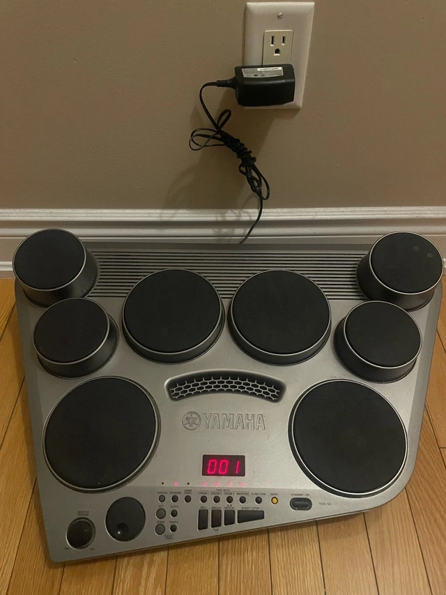 156Get ready to drum like a pro with this used Yamaha DD-60 Digital Percussion drum set! This portable and versatile unit is perfect for beginners and experienced musicians alike, offering a wide range of sounds and rhythms to explore. Here are some of its features: * Eight touch-sensitive drum pads * Hundreds of percussion voices and preset kits * Auxiliary input for playing along with your favourite songs * Headphone jack for silent practice * Record your own performance * Includes power adapter Can run off batteries Works well Price firm