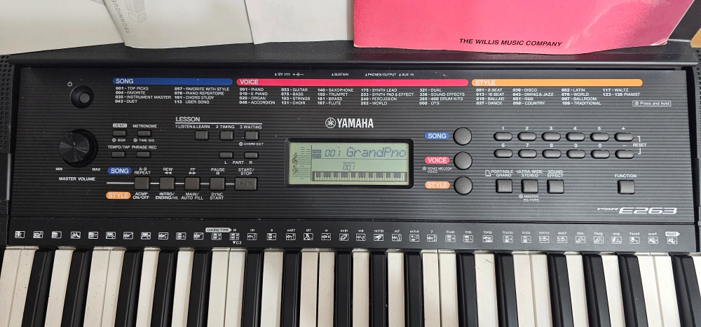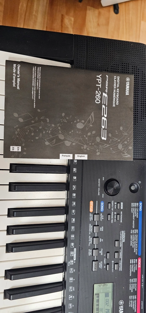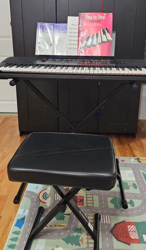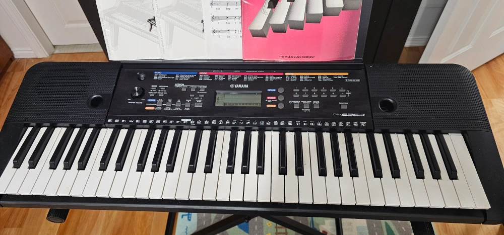 Selling a Yamaha PSR-E263 digital keyboard in great condition! It comes with the owner's manual, stand, seat, and some piano books to get you started. Perfect for beginners or anyone looking to brush up on their skills. Ready for a new home! Price is firm and prefer cash