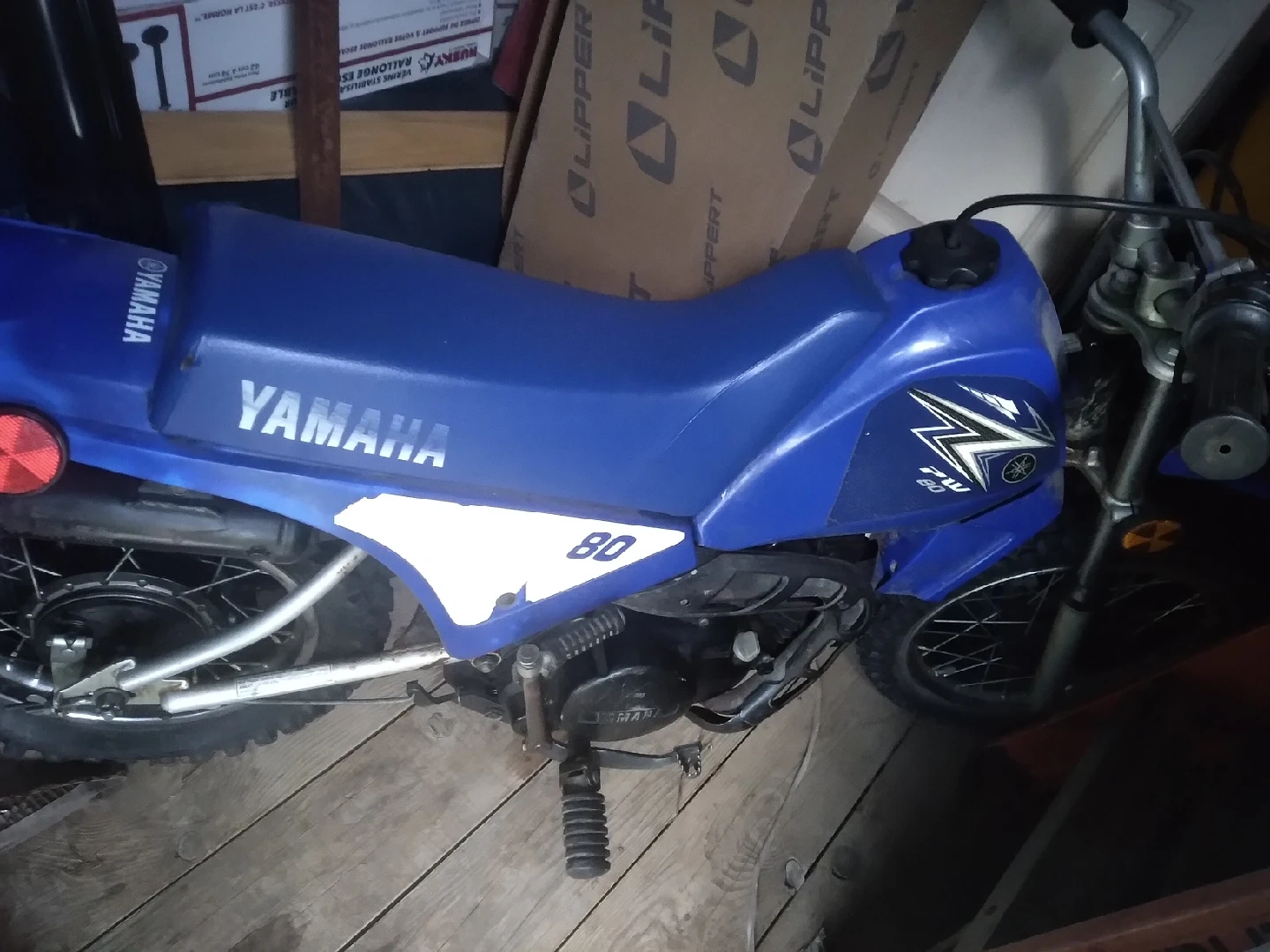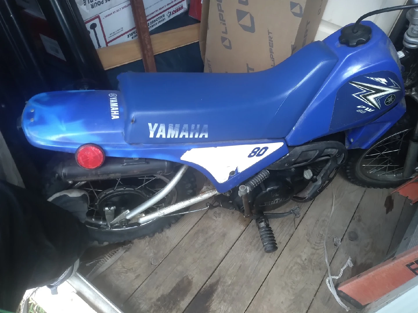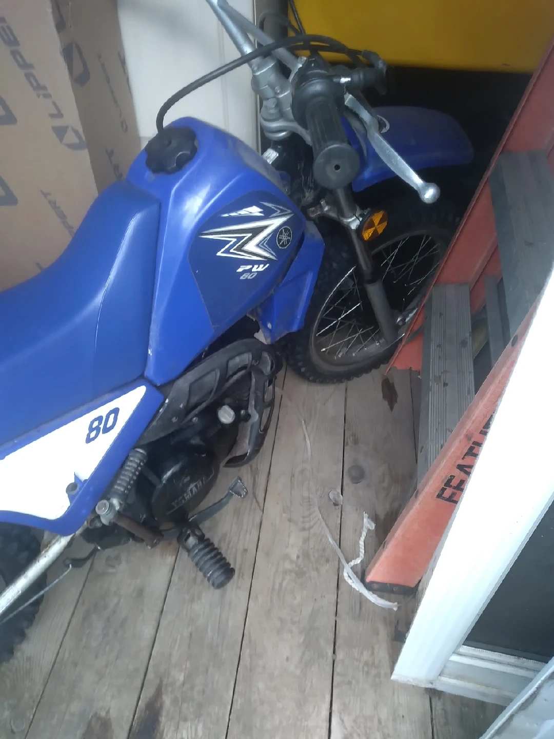 10Selling a Yamaha PW80 dirt bike. It's blue and would be great for learning to ride. It shows some signs of use, but it's still in good working condition. Perfect for kids or beginners!yr 2001