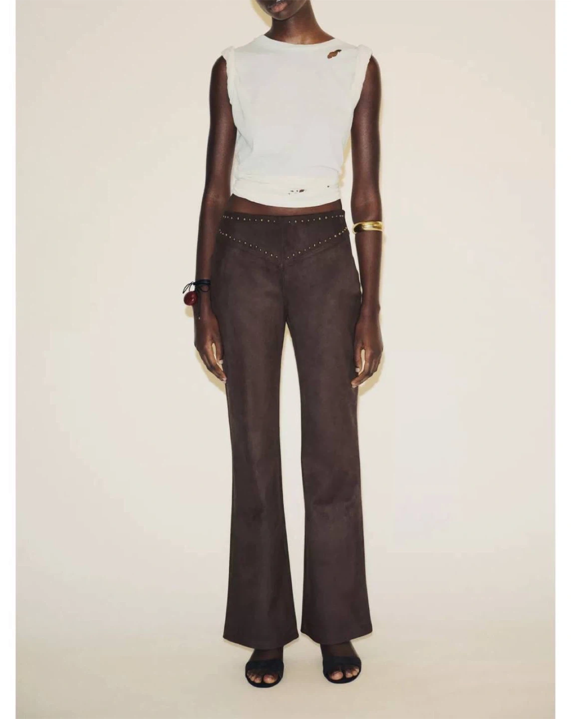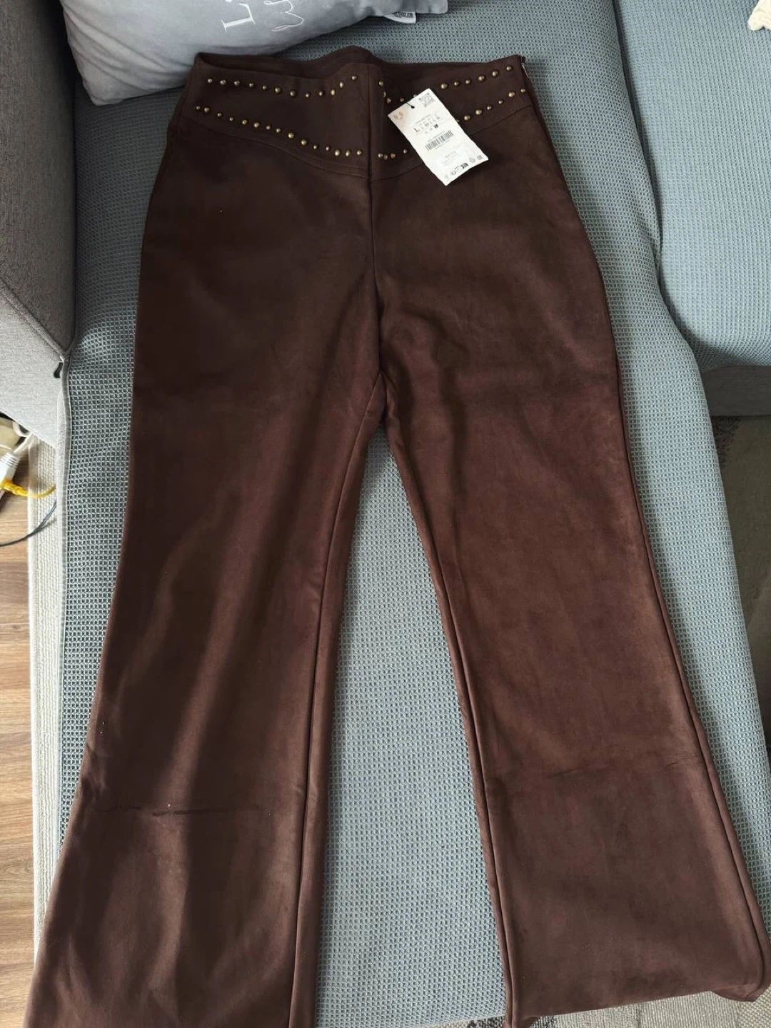 Dark brown studded flared pants Zara, size L