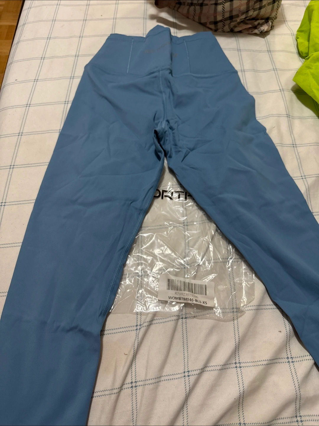 These are blue leggings from Jed North. They're size XS. The material feels soft and stretchy. Perfect for workouts!