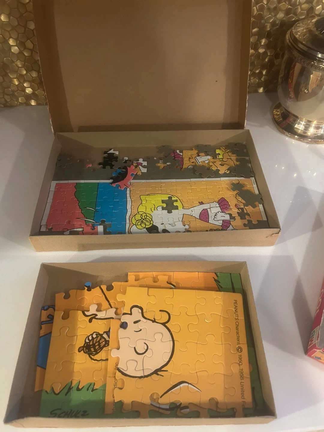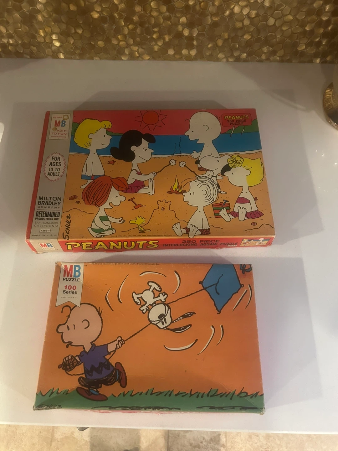 Selling two 1970s vintage Milton Bradley Peanuts puzzles! Both Charlie Brown -One is a 100-piece puzzle, and the other is a 250-piece interlocking jigsaw puzzle. Both are in good condition and ready for a new home!
