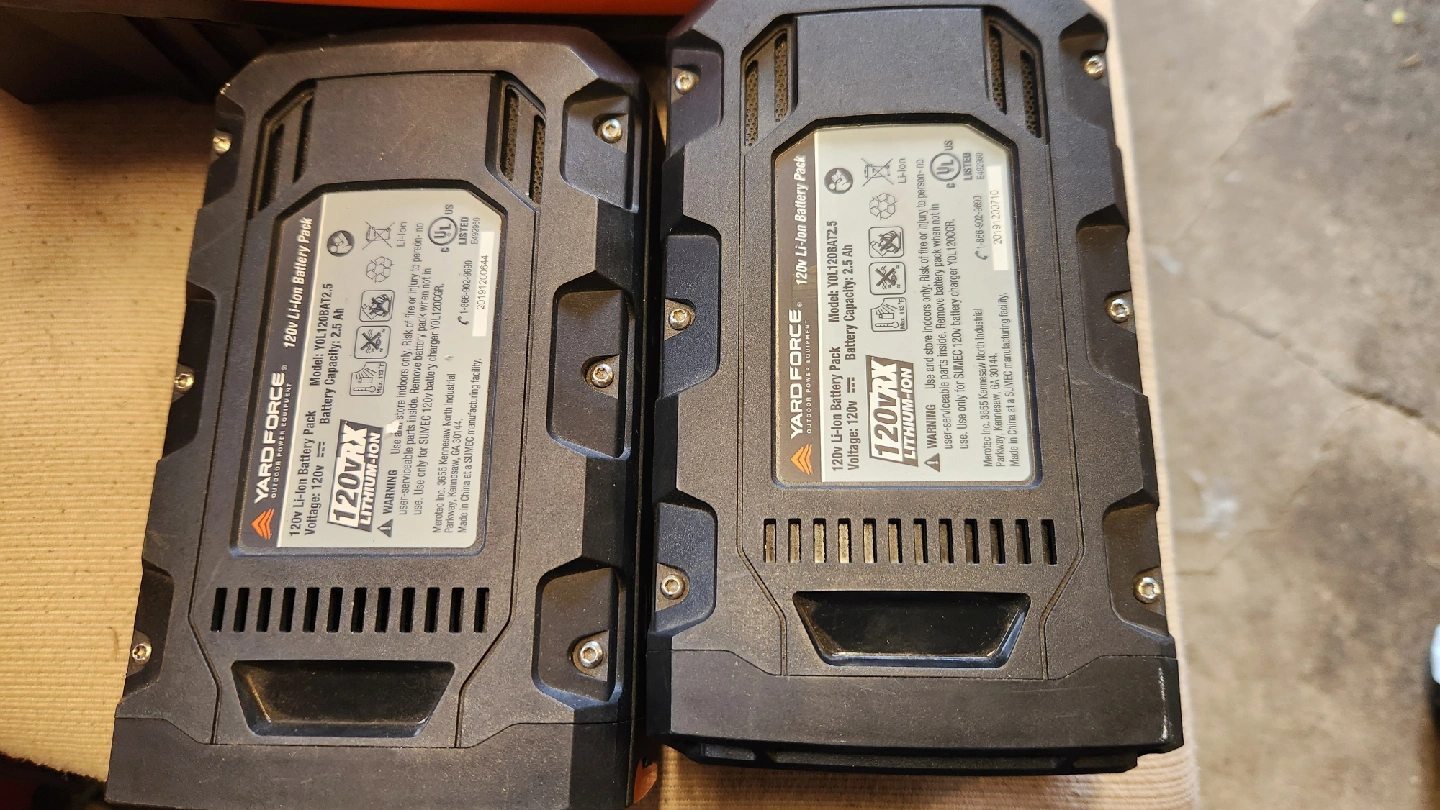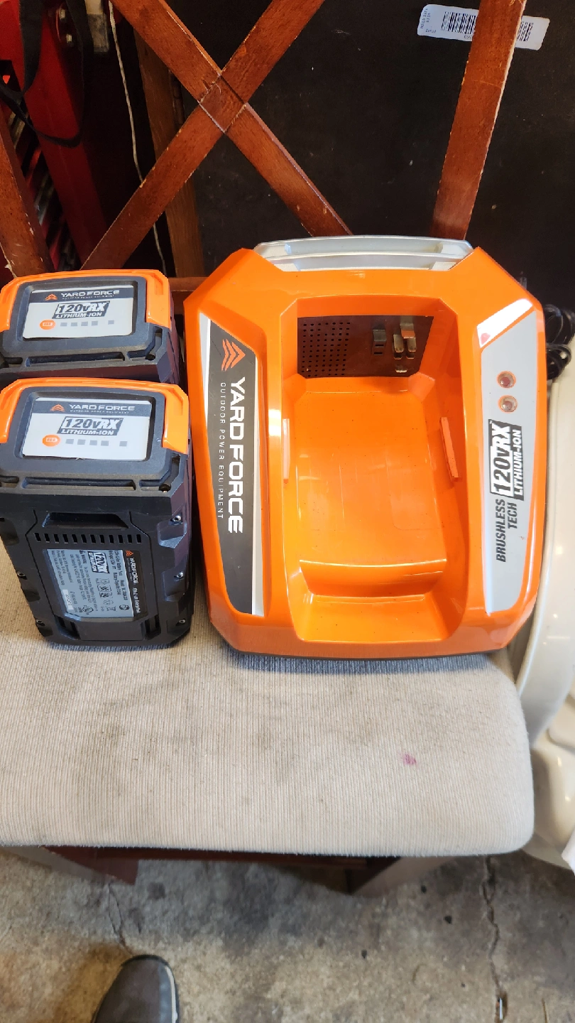 23Selling a Yard Force 120V battery charger and two 120V 2.5 Ah Lithium-Ion batteries. They are in great condition and ready to power your Yard Force tools!