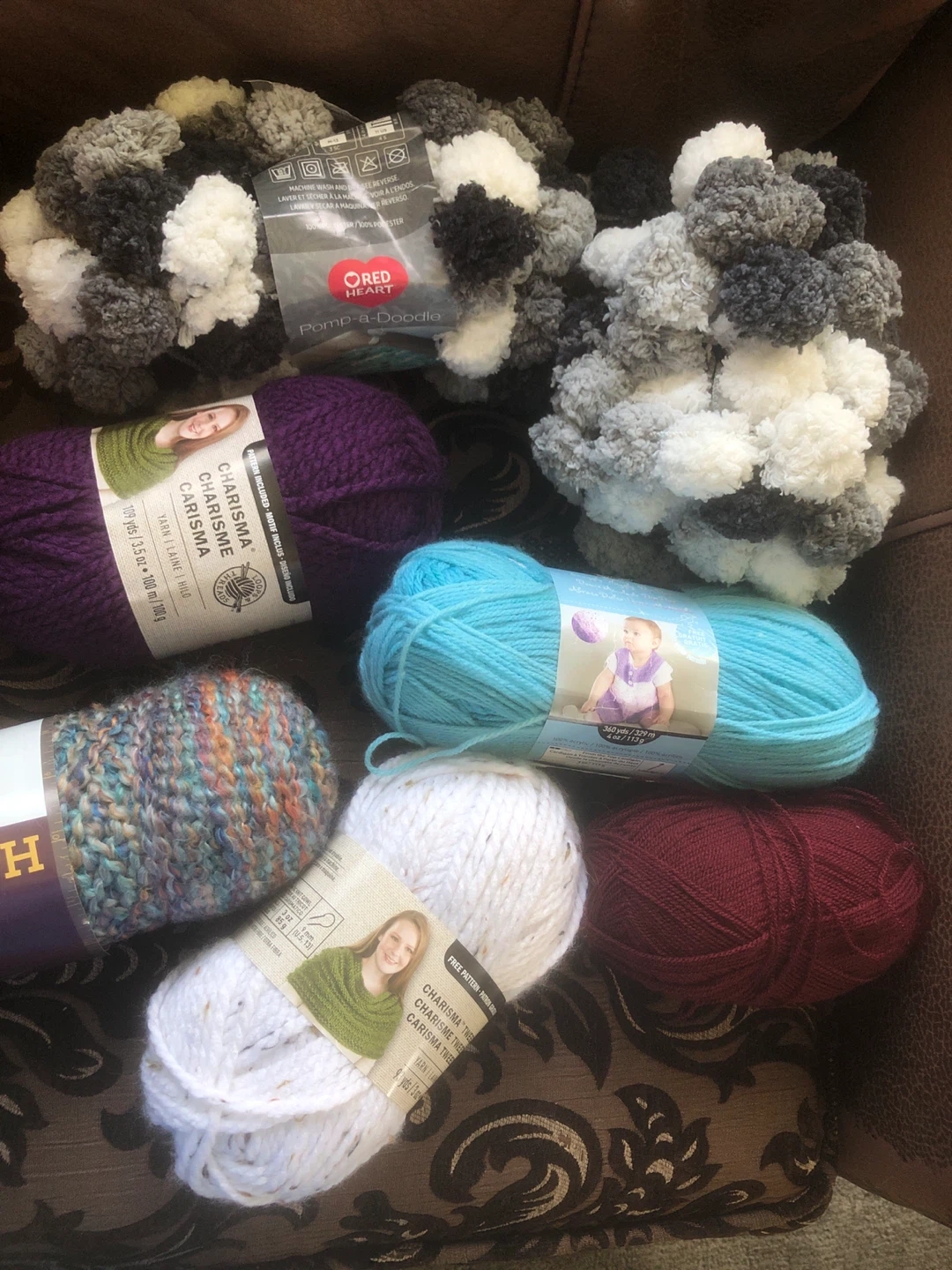 Selling a variety of yarn in different colours and textures! There's Homespun, Charisma, and Pomp-a-doodle yarn included. Perfect for your next knitting or crochet project