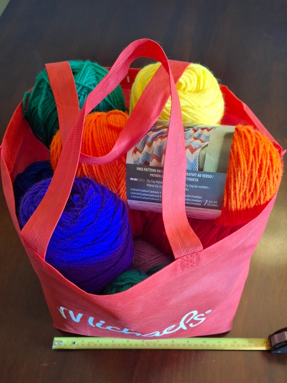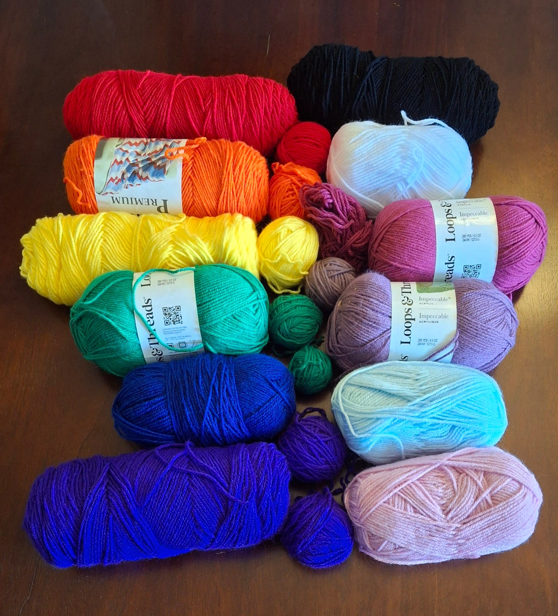 Bag full of acrylic yarn! Unused balls are 4.5oz red orange yellow green blue purple black white mauve raspberry pink light blue Cash and pick up only.