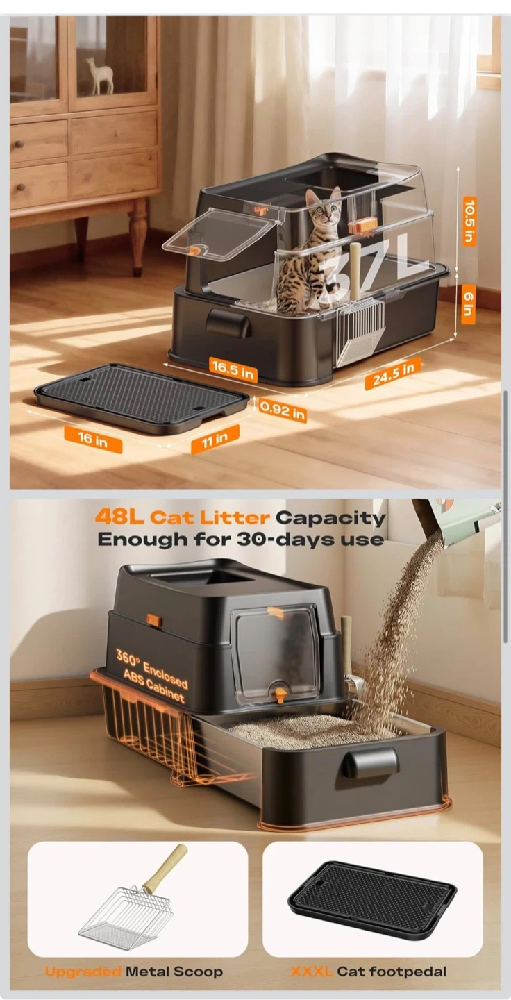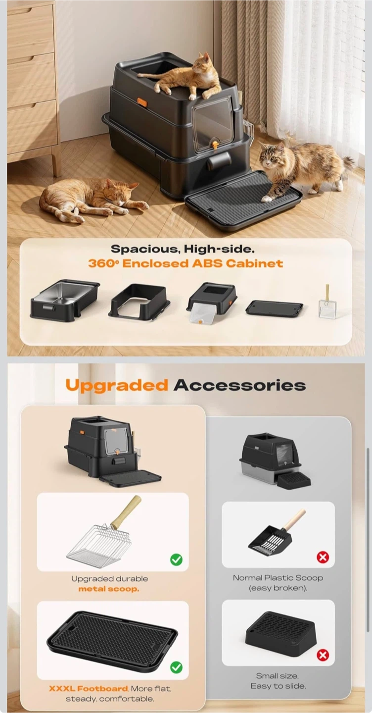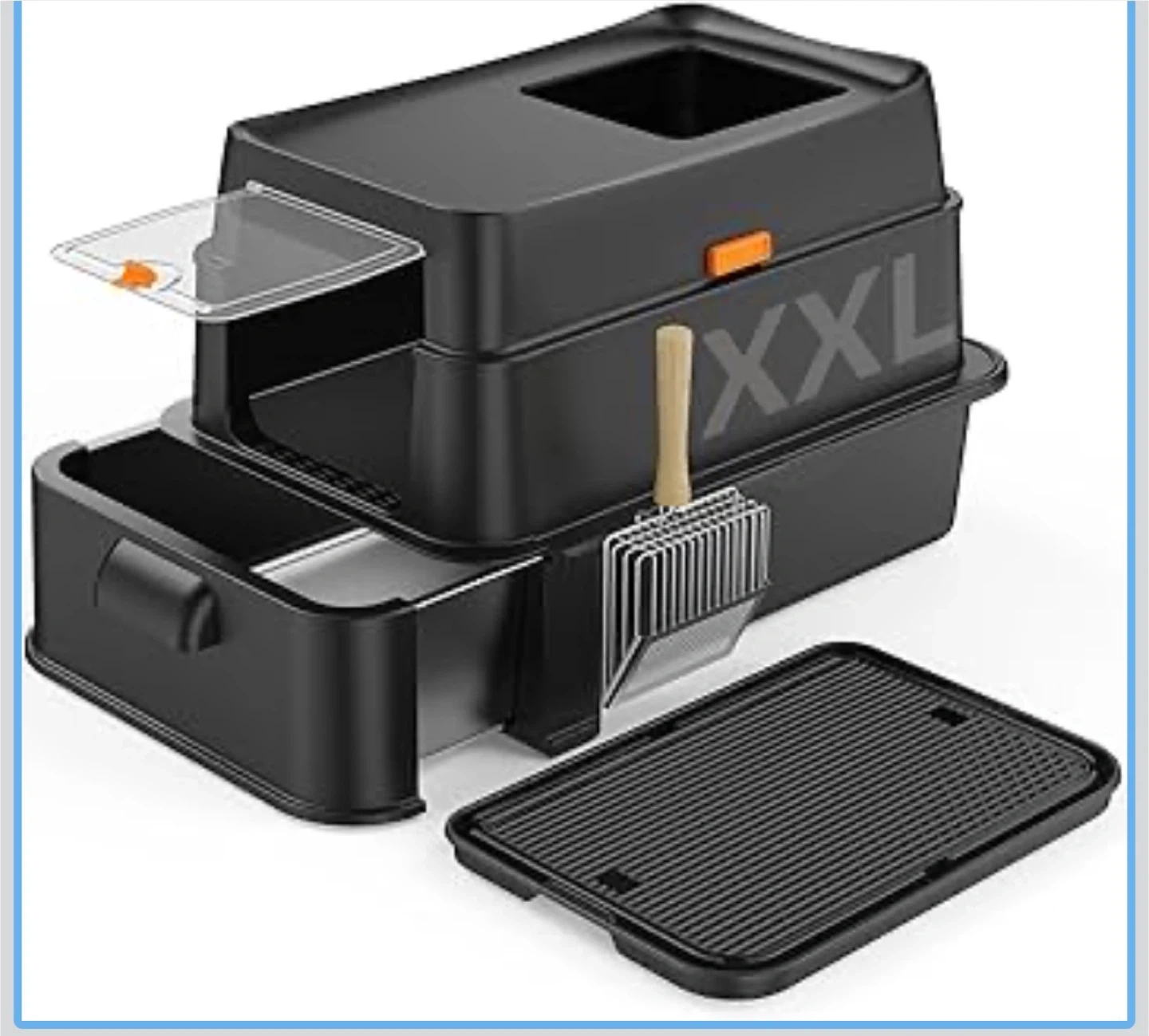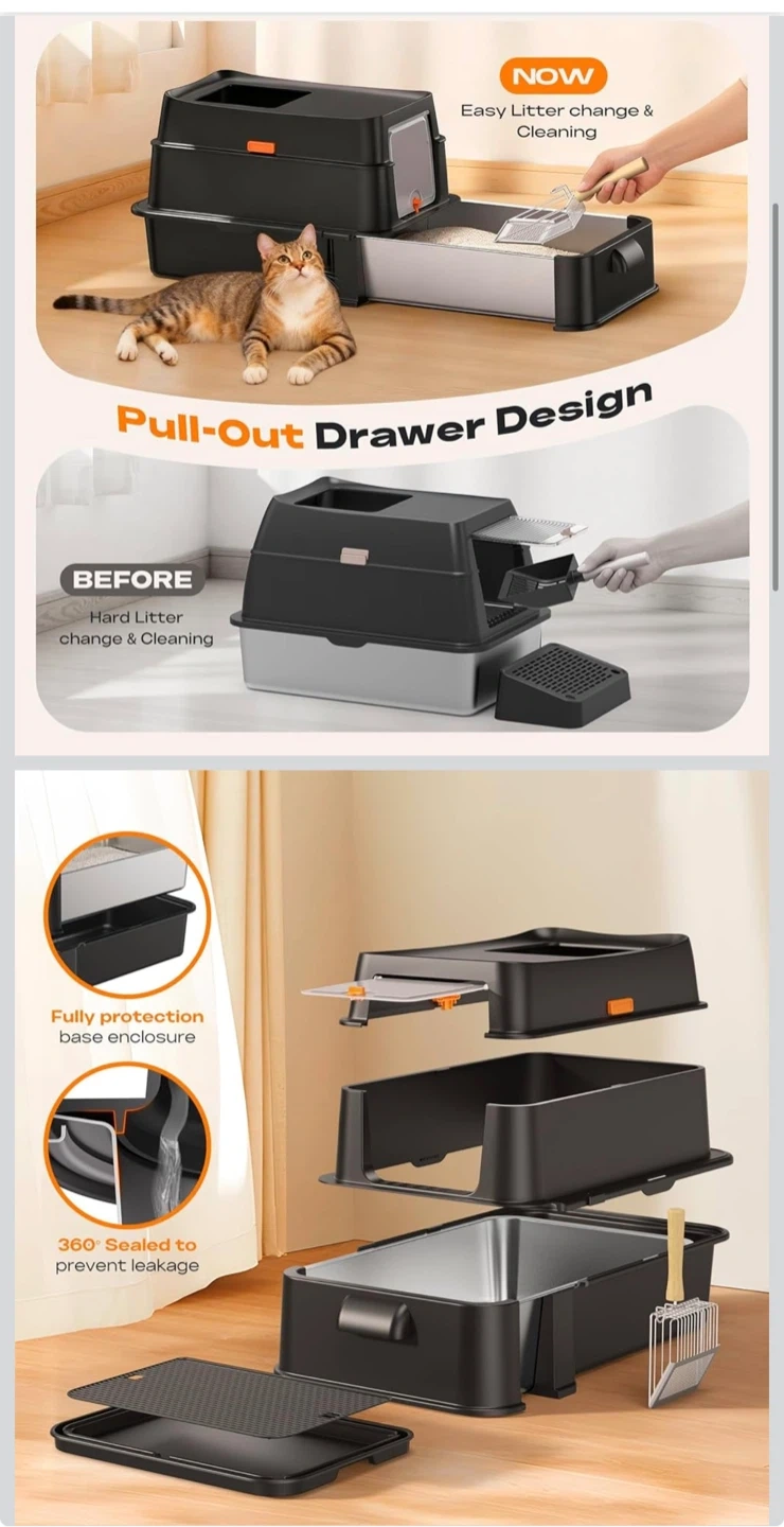 XXL Stainless Steel Cat Litter Box with Drawer, Extra Large Box for Cats, Enclosed Metal Kitty Litter Box with Litter Scooper, Odor-Urine-Proof, Non-Sticky, Easy Rinse Cleaning