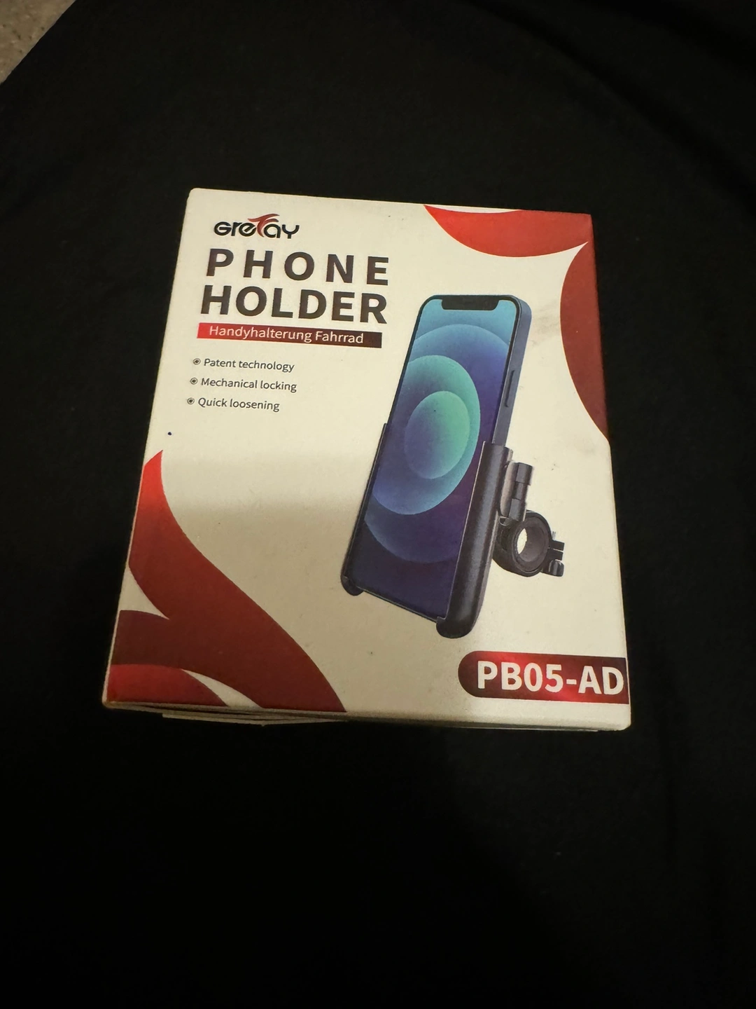 Bike phone holder. Comes in a box with instruction. Fits a variety of phones. Brand is Greay. Model is PB05-AD. Excellent condition. Never used