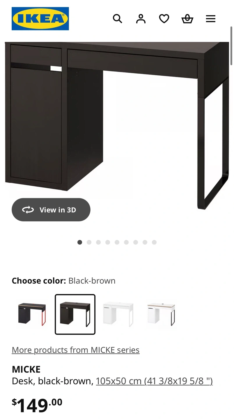 Like New IKEA MICKE Desk – Black/Brown – Assembled, Never Used