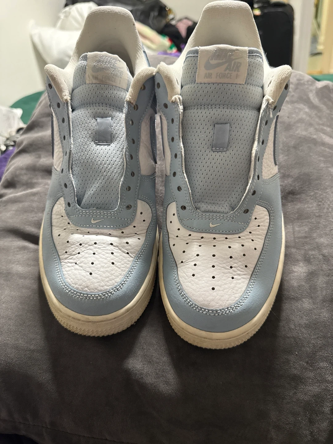 Selling a pair of Nike Air Force 1 Low sneakers in a nice blue colour. They're in good condition and ready for a new owner! I has since found laces
