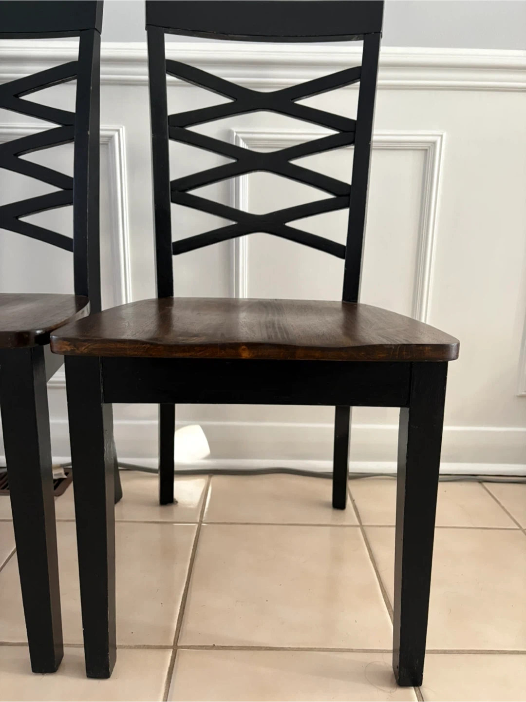 Three matching wooden dining chairs up for grabs! Black painted frame and wood stained seat. They're in good condition. Some chips and nicks on the painted parts but good for a flip project. Pick up near Bayview and Cummer.
