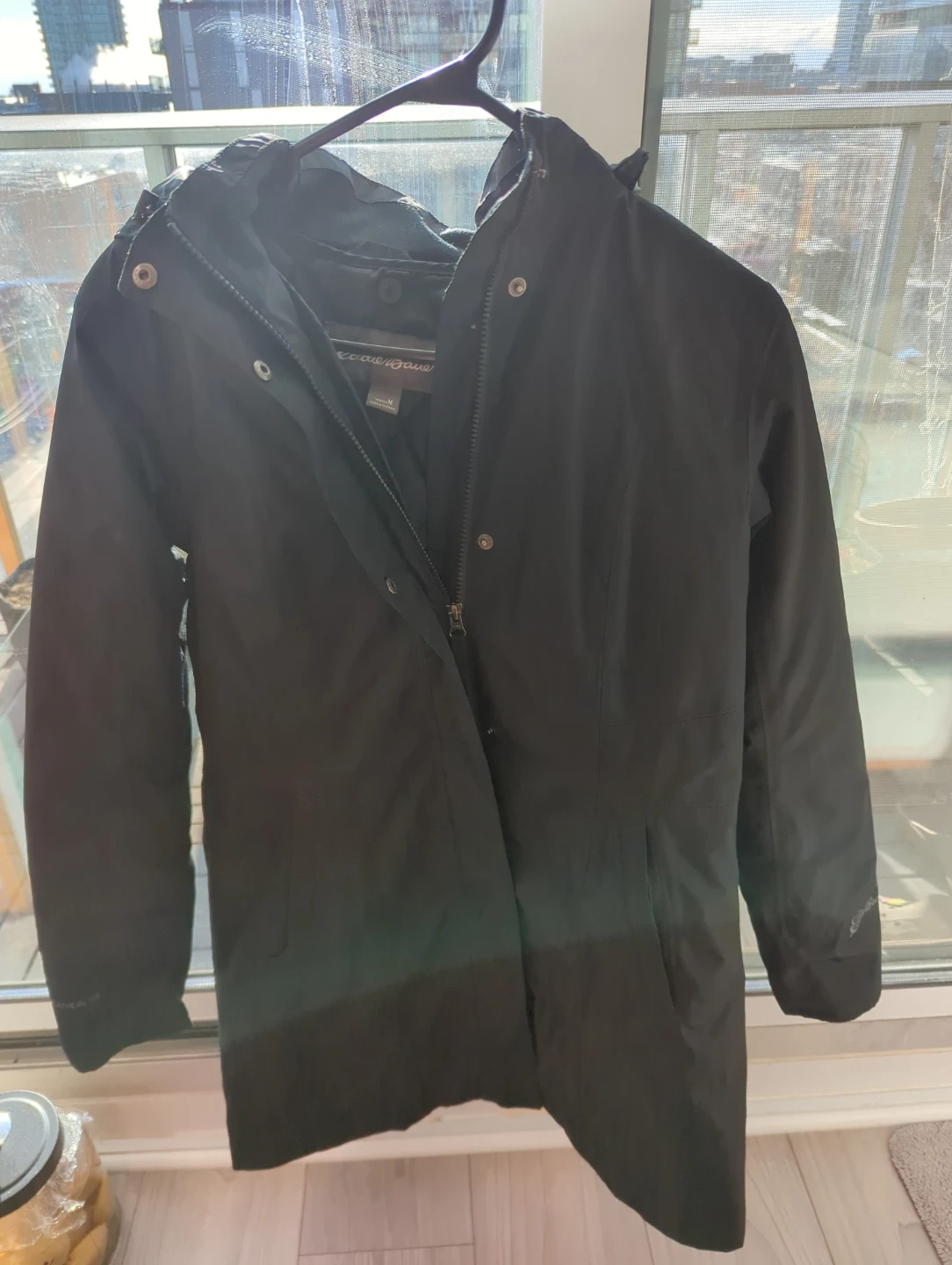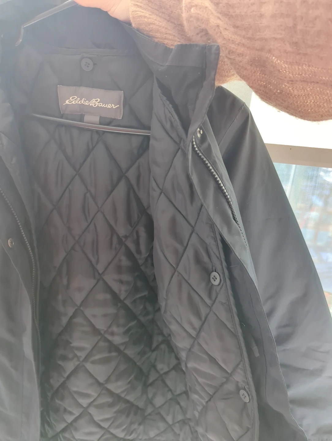 Selling an Eddie Bauer parka in black! It's in great condition and perfect for the cooler weather. The parka features a removable quilted inner lining for extra warmth and a hood for those rainy days. It's a stylish and practical addition to any wardrobe!