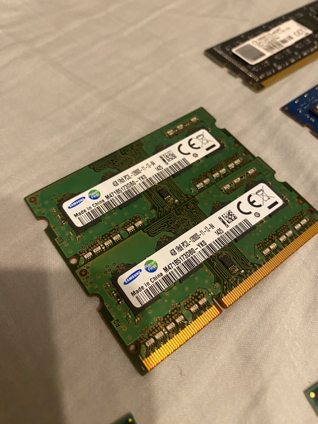 Various RAM modules including Kingston, Samsung, and others. Specifications vary by module.