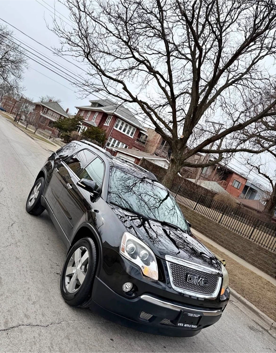 Black 2012 GMC Acadia SLT 2WD SUV. It features a 3.5L V6 engine. The emission test is ready and the check engine light is on because it starts but cut off after a while. Will start back but need timing chain it was sold to me like this unknowingly. Paid 2700 asking for 2500 obo