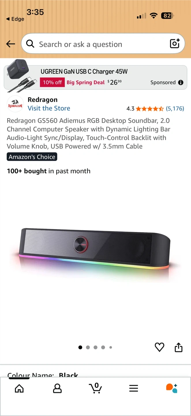 This Redragon computer speaker bar delivers vibrant RGB lighting with audio-light sync. It's USB powered and features a volume knob for easy control. A 3.5mm cable is included for connectivity. It’s in good condition but needs a good dusting.