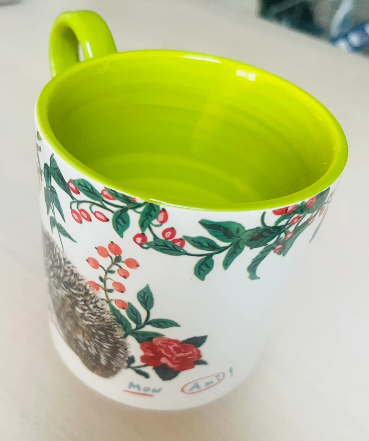 This charming mug features a hedgehog design exclusively for Anthropologie, created by Nathalie Lété. It's dishwasher and microwave safe. A delightful addition to any kitchen!