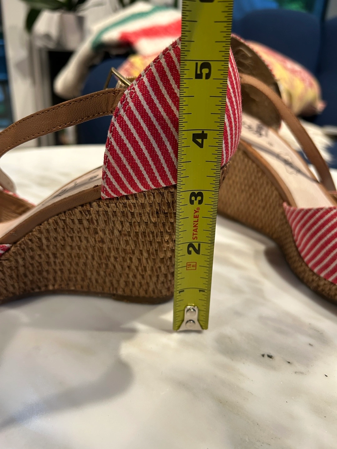 Red and White Striped Wedge Heels - Size 39