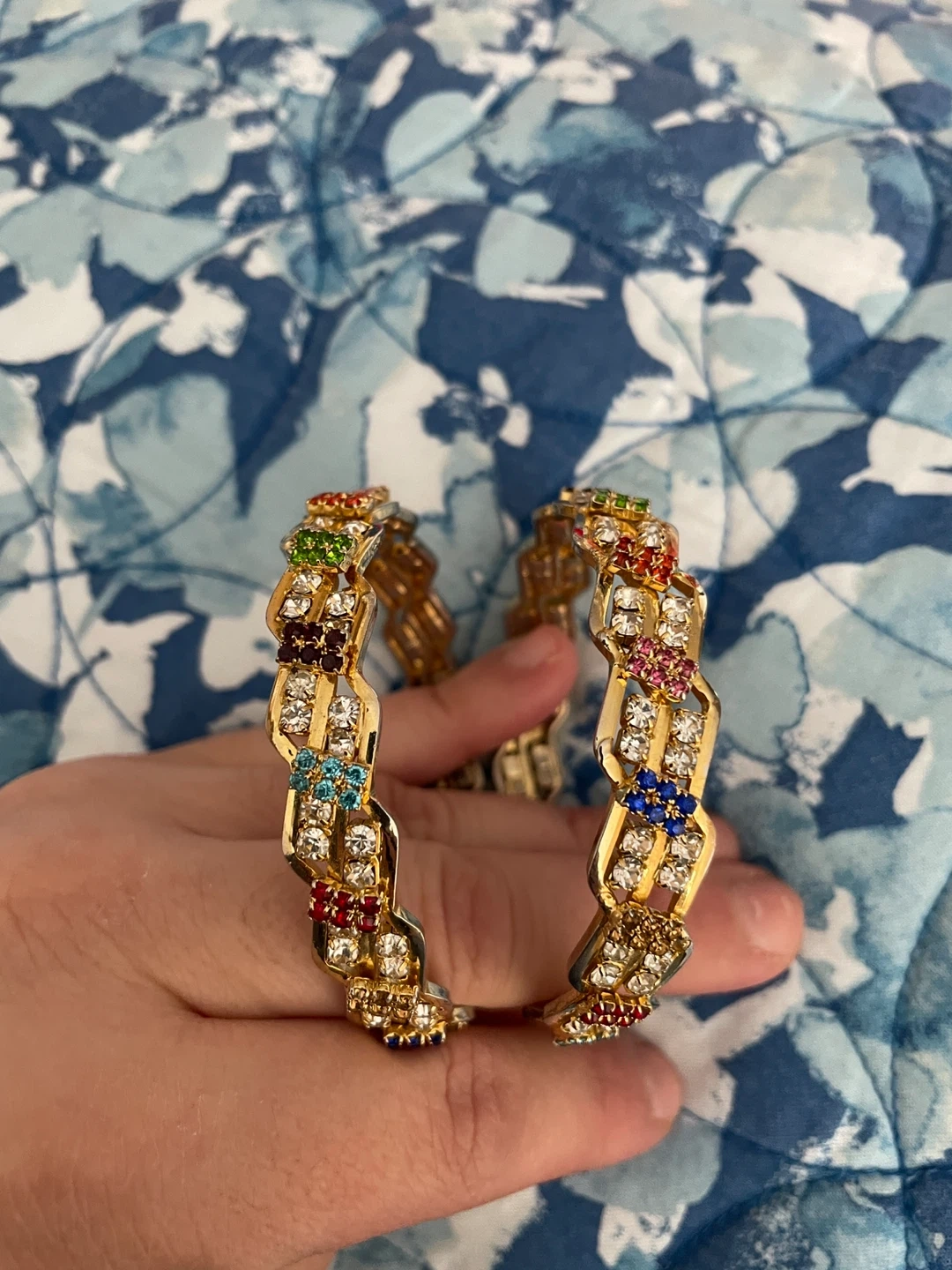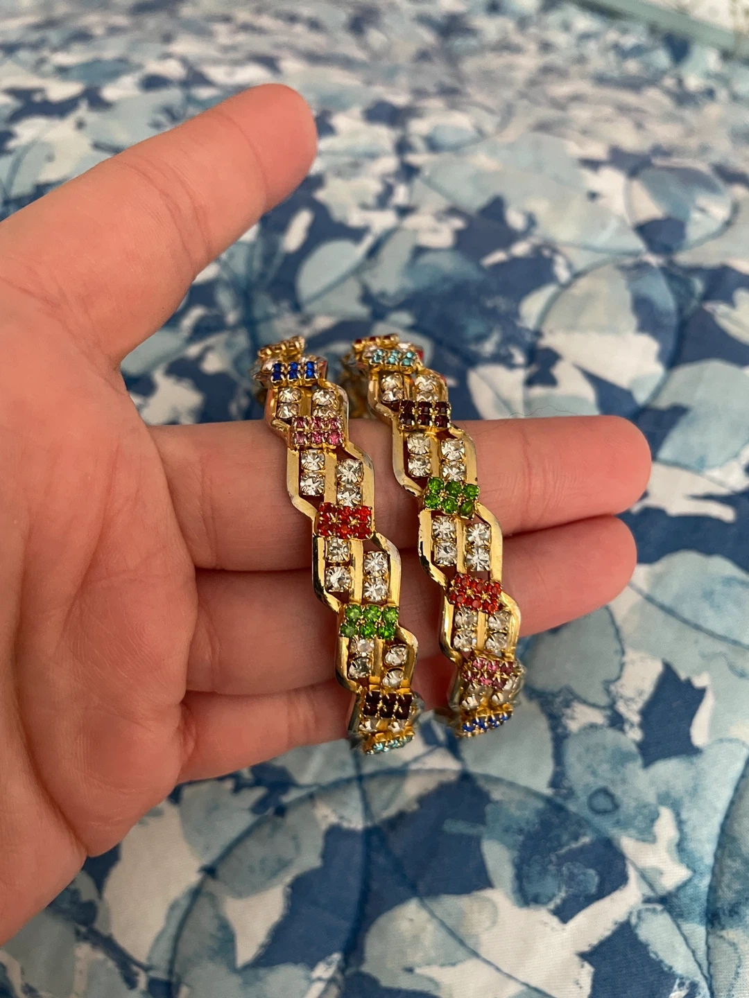 Gold-tone Bangles with colourful rhinestones