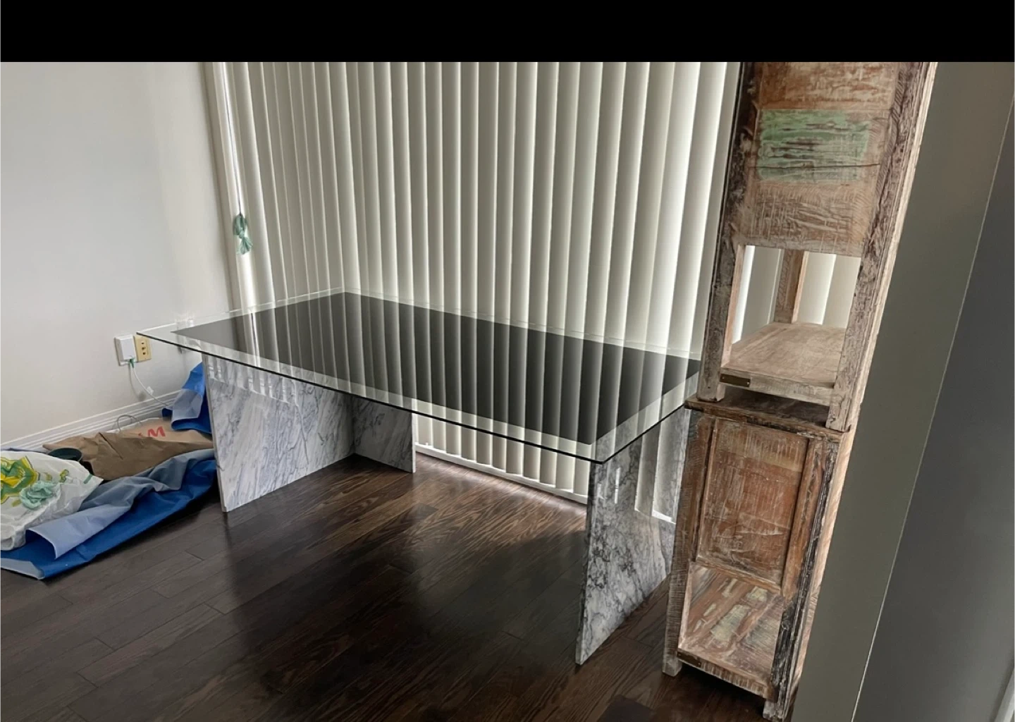 Rare opportunity to own a statement Arabescato Vagli marble desk with custom mitered waterfall legs and a 6ft floating glass top. Acquired in 2023 from a prominent attorney’s estate, this is an architectural centerpiece in a stunning charcoal and white grain.
