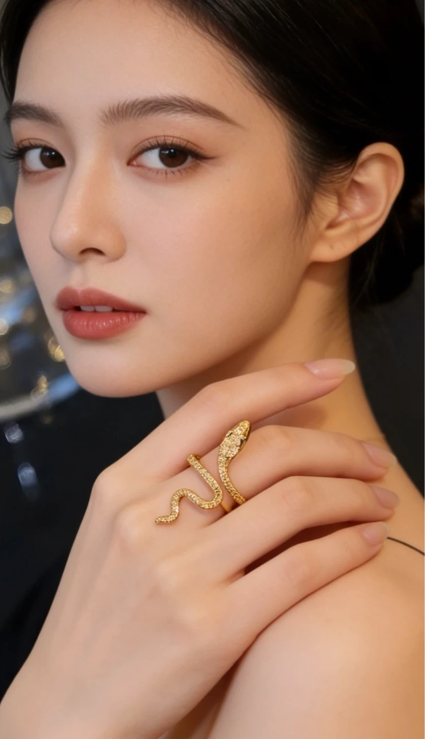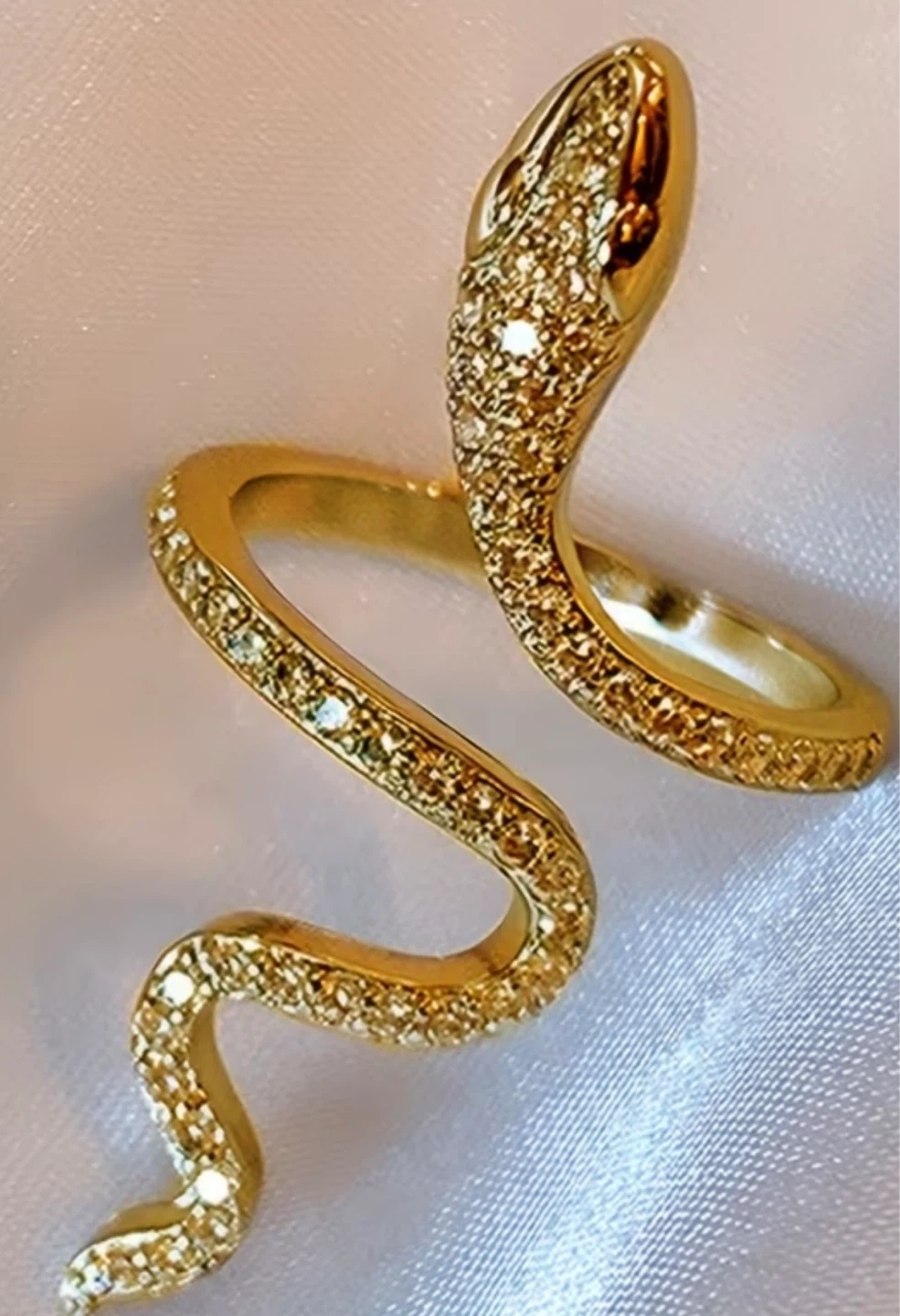 Gold Snake Ring with Rhinestones