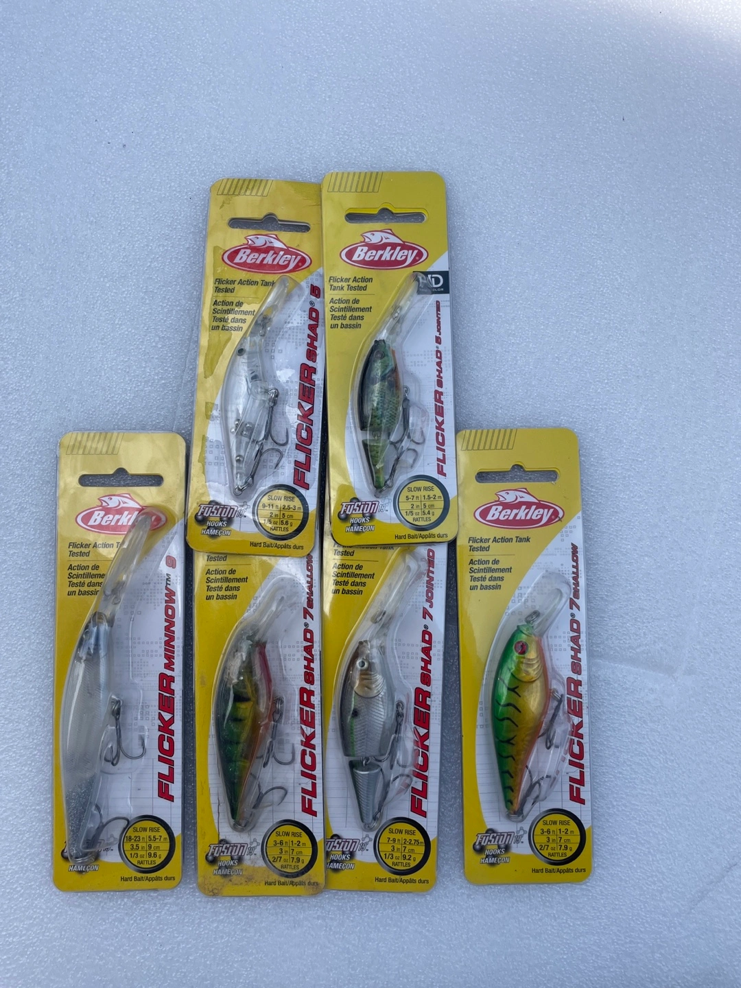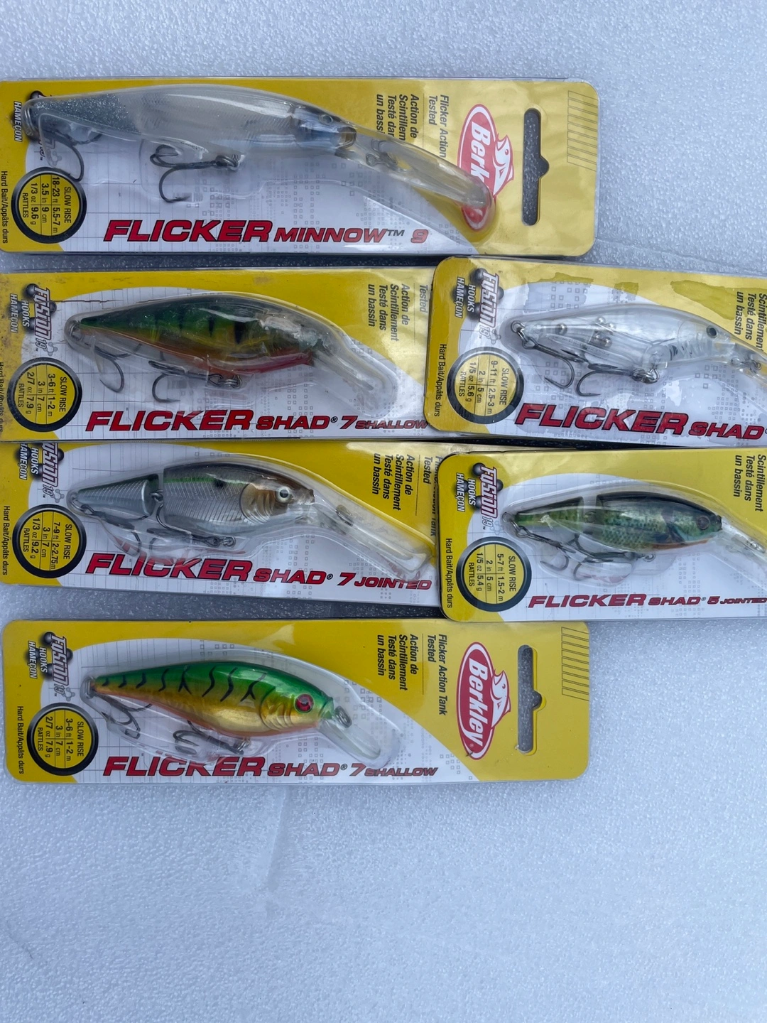 I'm selling a collection of new Berkley Flicker fishing lures! These are all still in their original packaging and ready to hit the water.