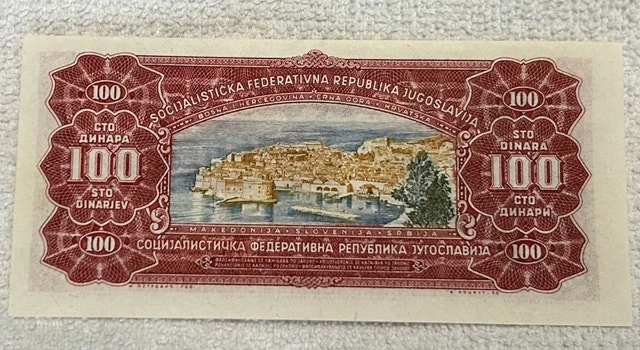 This is a 1963 Yugoslavia 100 Dinara banknote in circulated condition. The front features a woman and the back has a coastal scene. It's a neat piece of history to add to your collection! I'm clearing out my collection. Feel free to message if you have any questions!