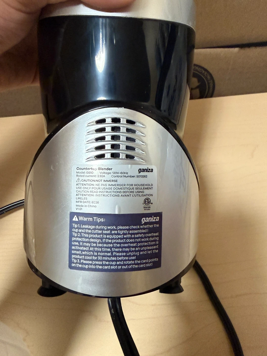 Ganiza GB10 countertop blender in like-new condition. Used lightly over about 9 months β still looks and works great. Comes with everything: multiple cups (different sizes), 2 blade attachments, lids and caps. Does both blending AND grinding β perfect for smoothies, protein shakes, spices, coffee beans, you name it!