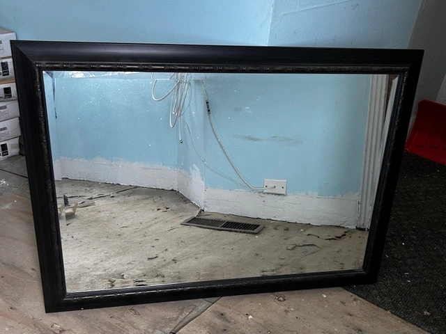 This is a large black framed mirror that would be an elegant addition to any room. It is in good condition, with some wear on the back. Size - 40 1/2 x 28 1/2. Looking at Kijiji, similar mirrors are listed for between $75 and $150. I am pricing it in the middle range to sell quickly. If the ad is still up, it's still available! Cash only. Pickup in East York.