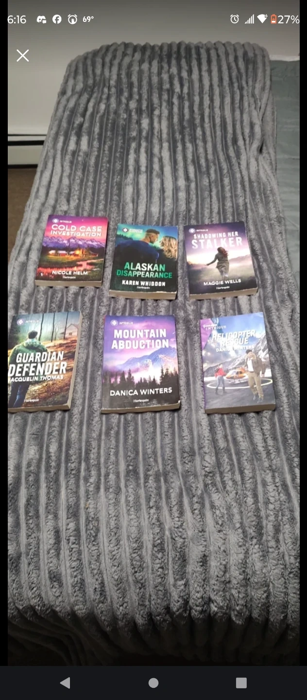 Selling a small lot of home and reading extras: a Precious Moments porcelain vase inscribed “The Lord will provide,” a clear pressed-glass vase with starburst detailing, and six Harlequin Intrigue paperbacks (titles include Cold Case Investigation, Alaskan Disappearance, Shadowing Her Stalker, Guardian Defender, Mountain Abduction, and Helicopter Rescue)—a mix of sentimental decor and binge-ready suspense for cheap.
