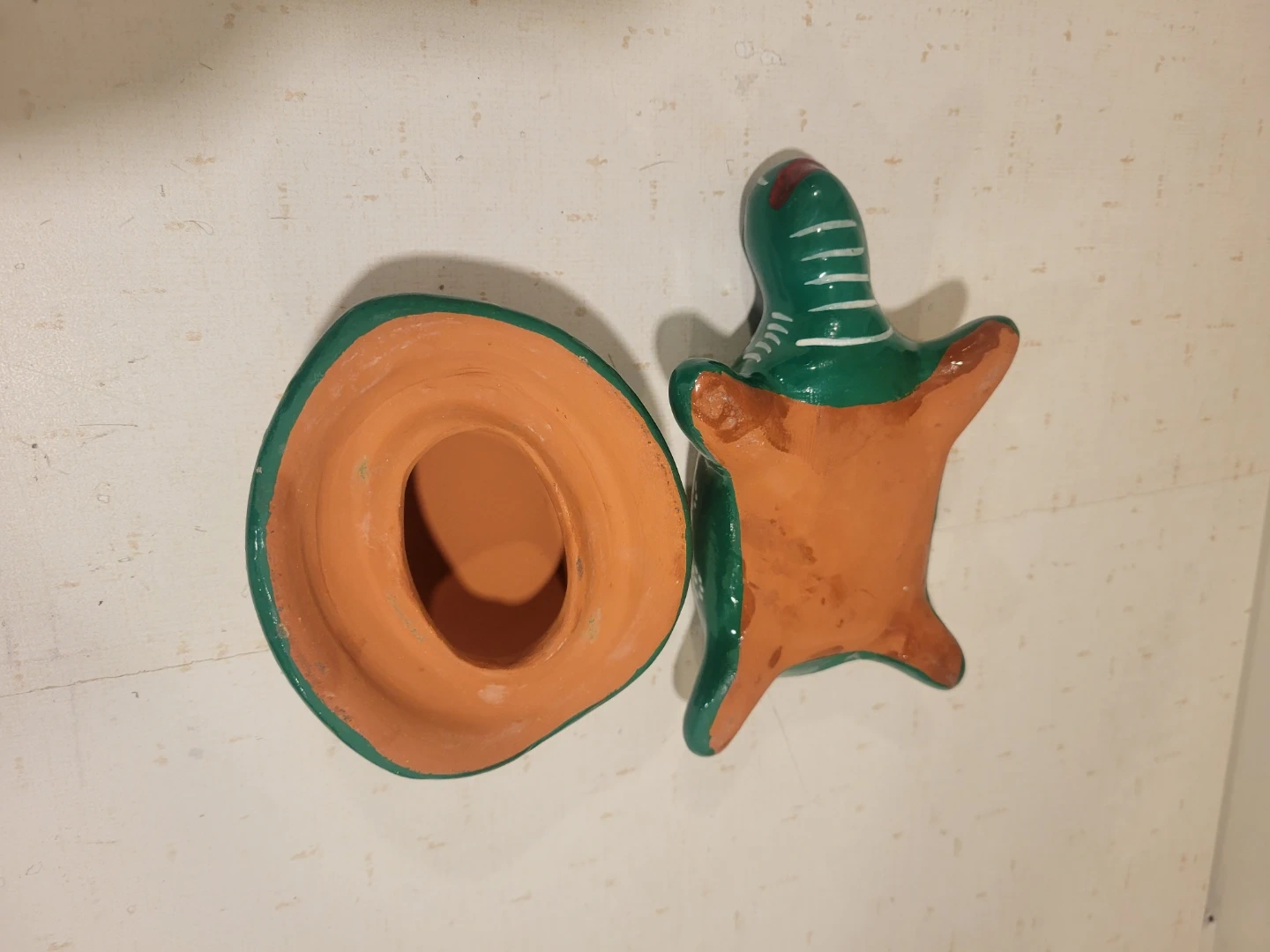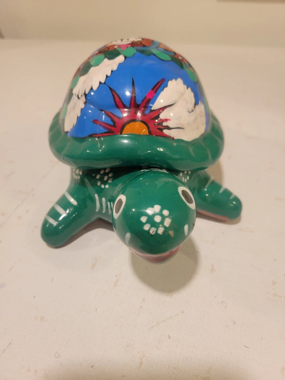 Vibrant Mexican Terracotta Pottery Turtle Trinket Box.