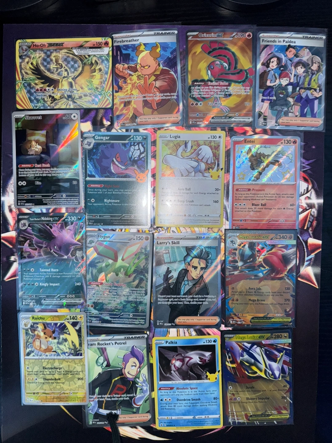 Mix of Prismatic, destined rivals, Celebrations 25 and more Collection of various Pokemon TCG cards. Includes popular characters and rare cards. Great for collectors or players looking to expand their deck. All cards pictured are included. 96 cards