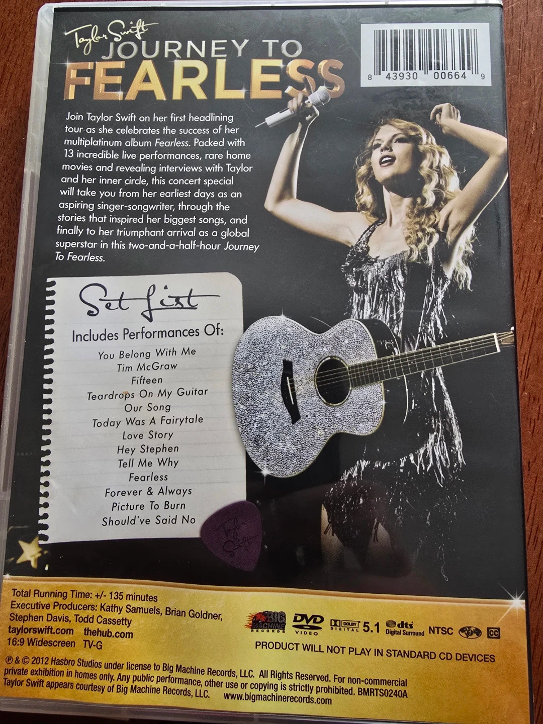 This DVD features Taylor Swift's "Journey to Fearless" concert special. It includes performances of 13 hit songs and rare interviews. The total running time is approximately 135 minutes. Experience the ultimate live show!