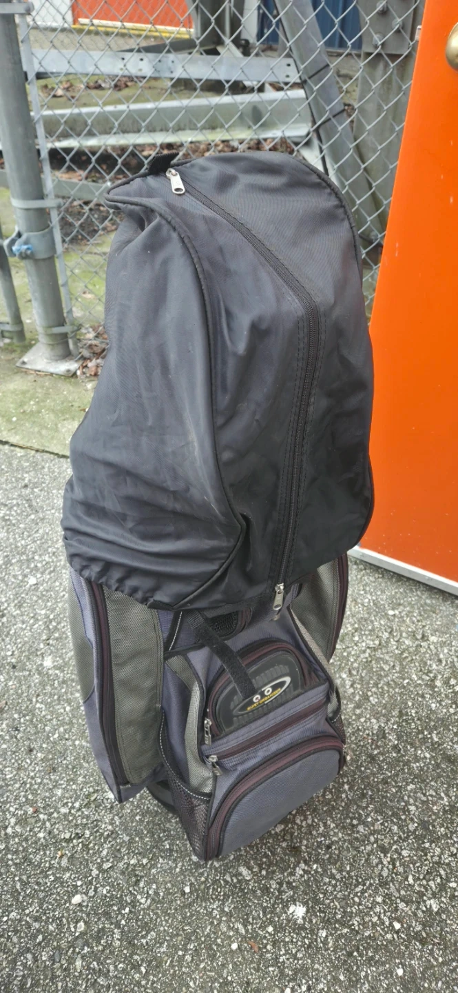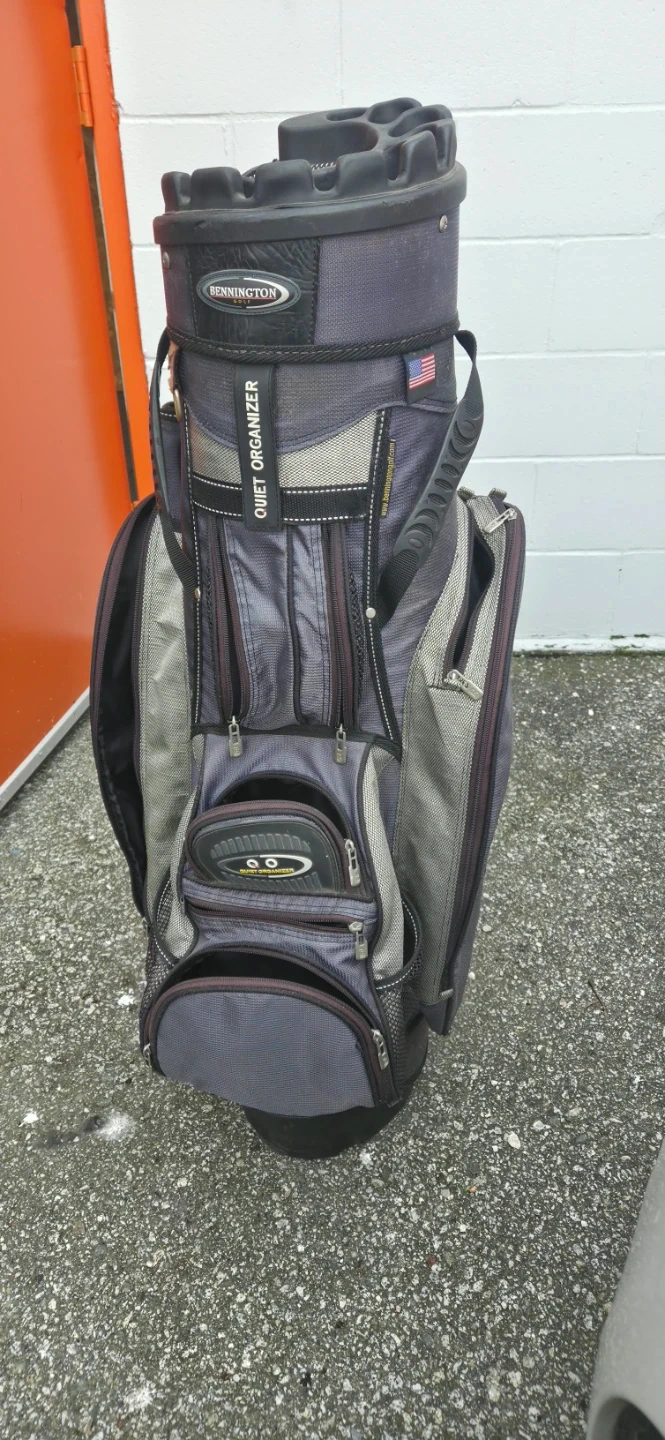 This Bennington golf bag is designed for organization. It features a quiet organizer top with multiple dividers for clubs. Several zippered pockets offer ample storage for your gear. Includes a rain cover.