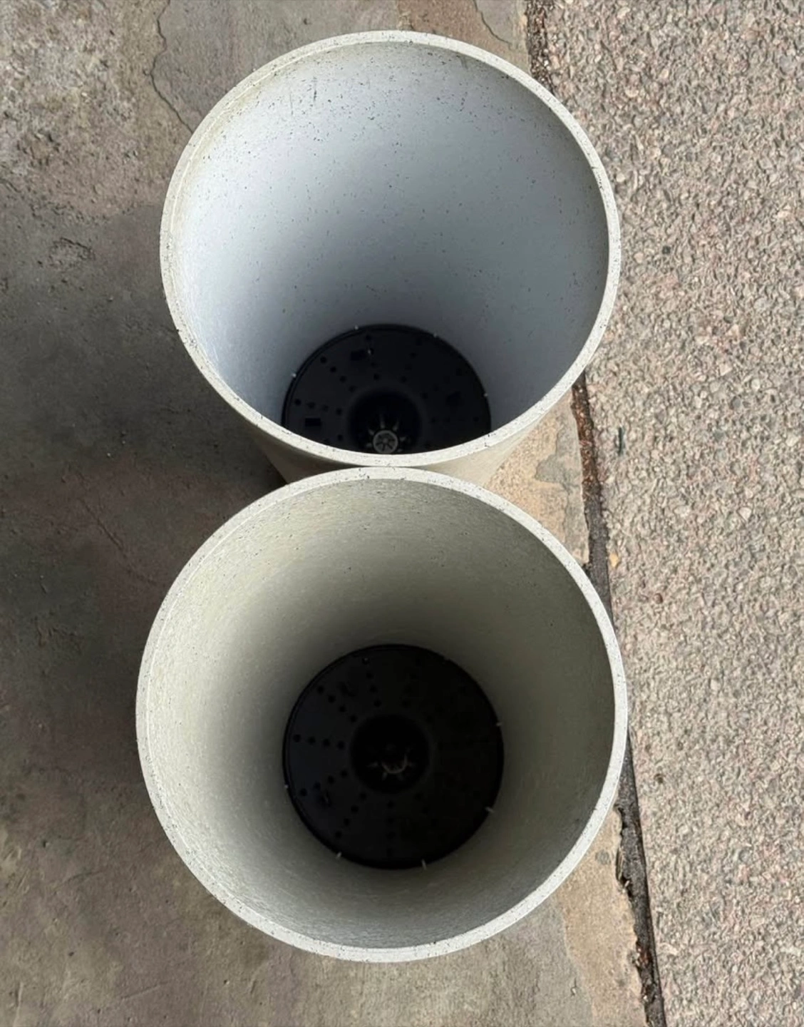 Two White Concrete-Look Tall Planters