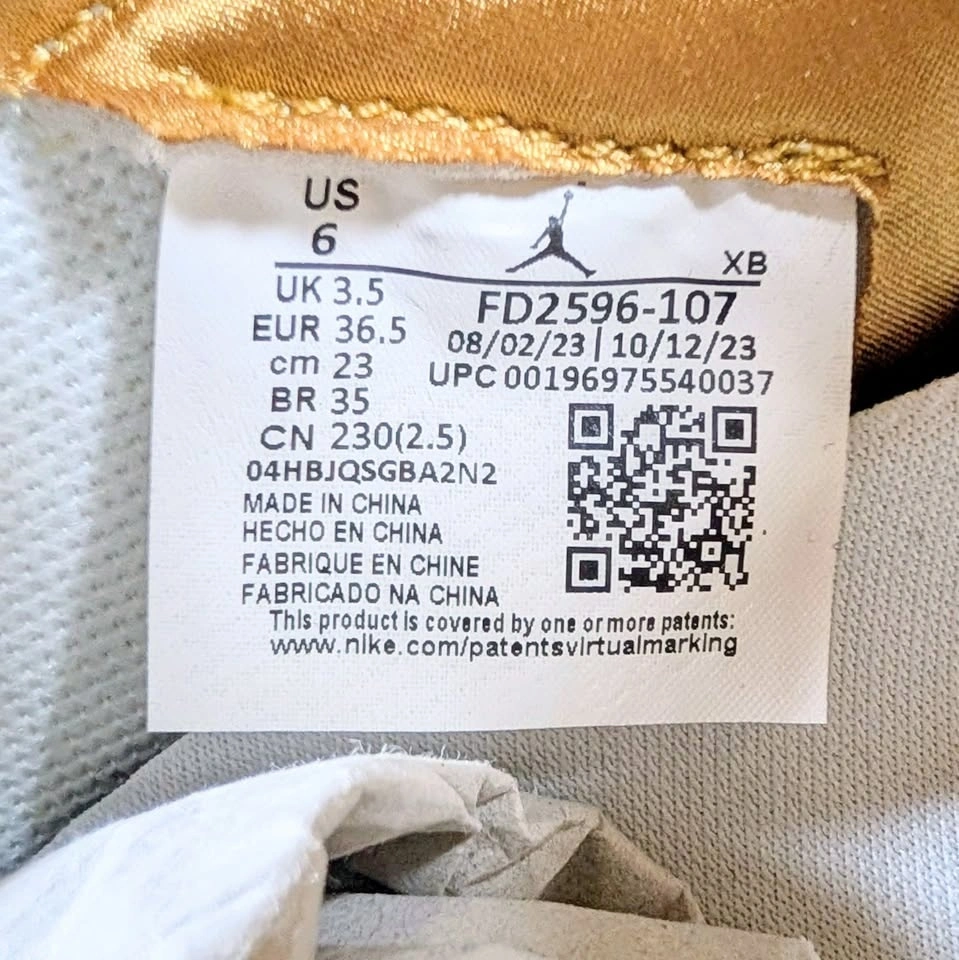 The Women's Exclusive "White/Metallic Gold" colorway was released on February 14, 2024, and features a white leather base with metallic gold accents.
