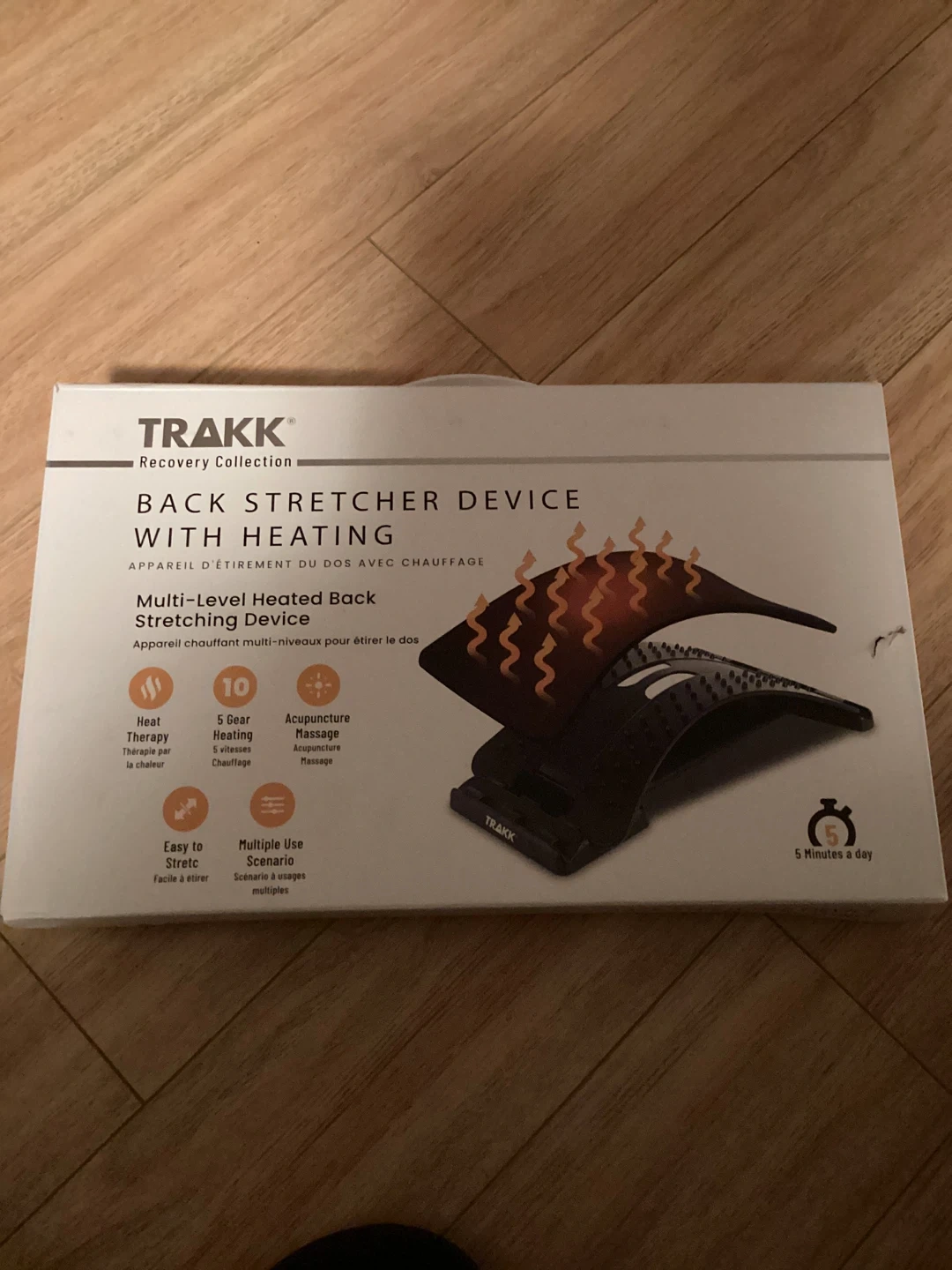 Get some relief with this TRAKK back stretcher! It features multi-level heated back stretching, heat therapy, and acupuncture pressure. It's easy to stretch and can be used in multiple scenarios. It also comes with the box and instructions for use