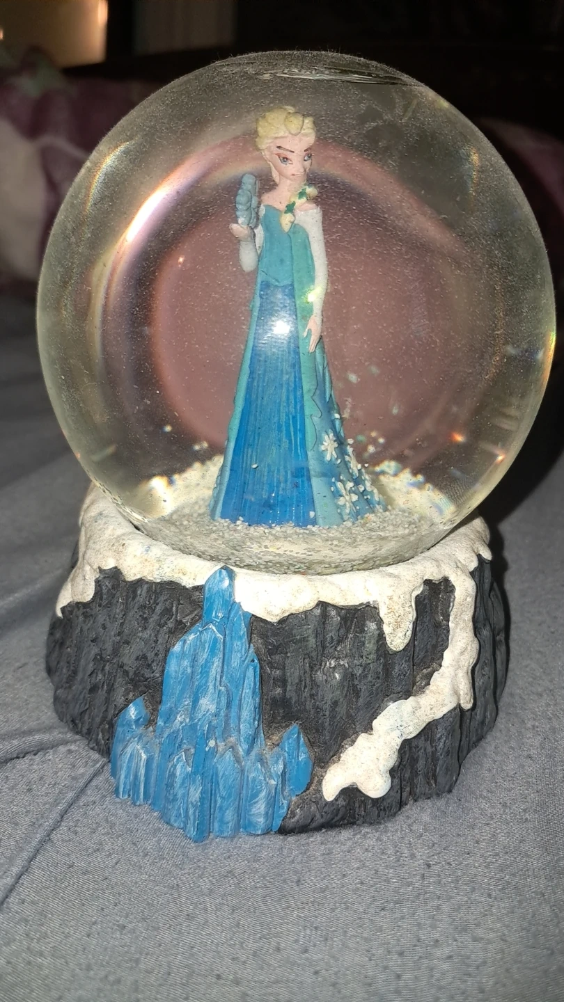 This Disney snow globe features Elsa from Frozen. It's a decorative piece with glitter inside the globe. Made by Department 2015.