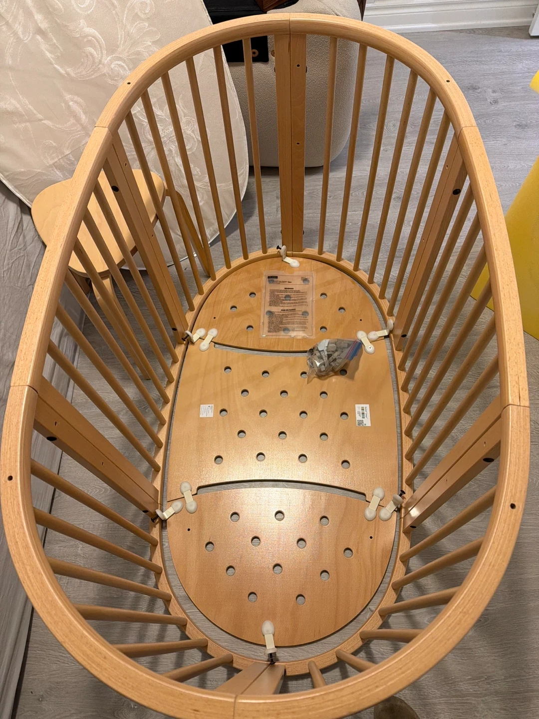 This Stokke Sleepi Bed is a versatile crib that's designed to grow with your child. It's made from beechwood and features a breathable mattress base. The oval shape fits well in most rooms. Come with Mattresses.