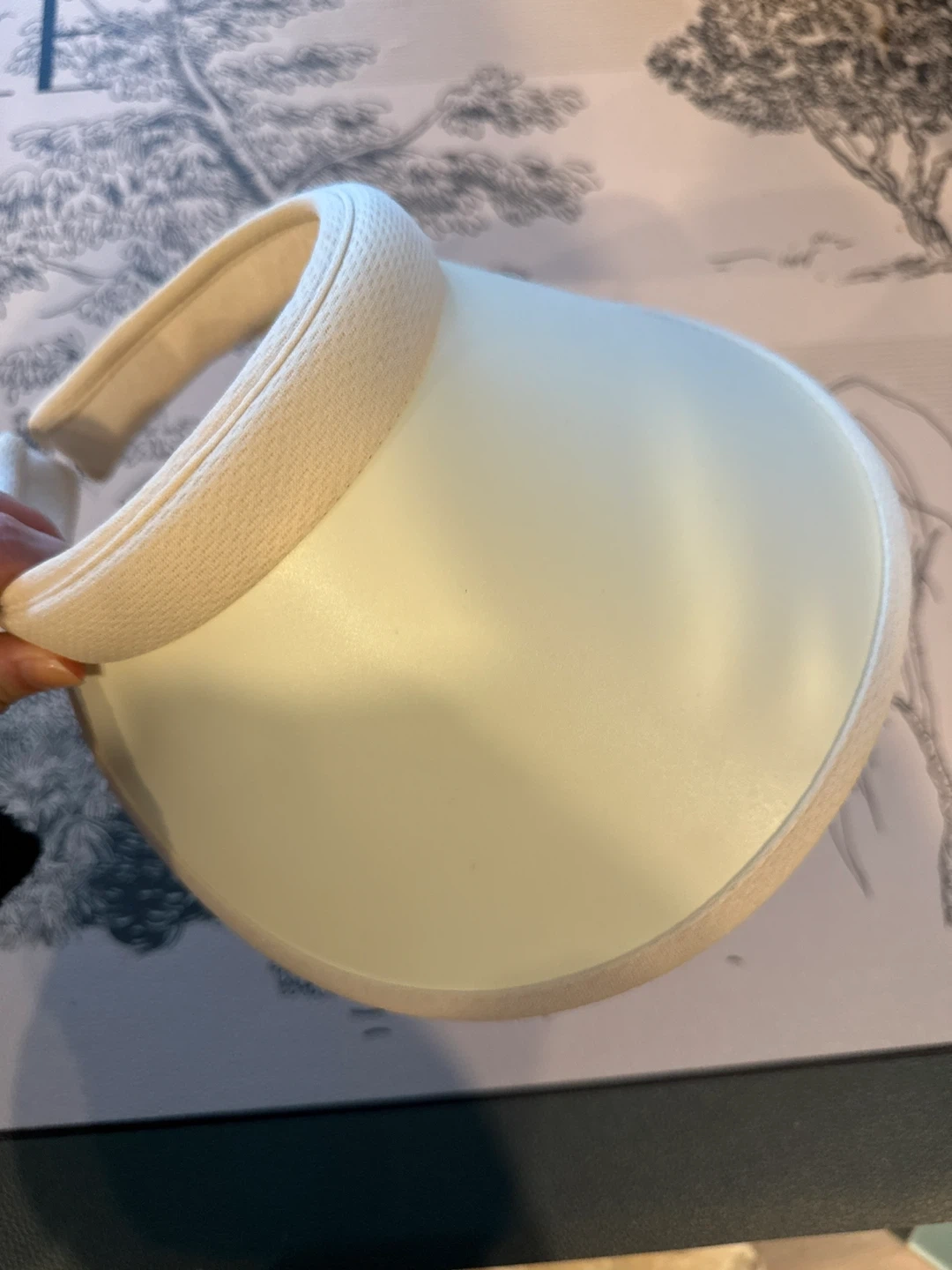 Selling a light beige visor, perfect for sun protection! It's in great condition and ready to keep you shaded on sunny days
