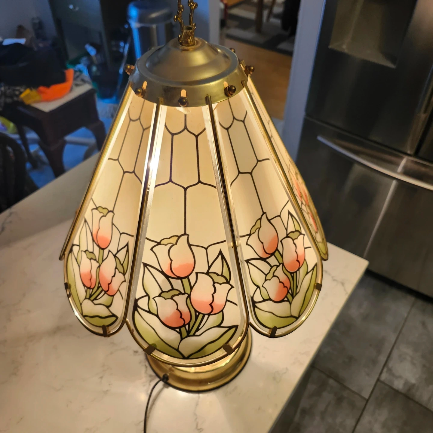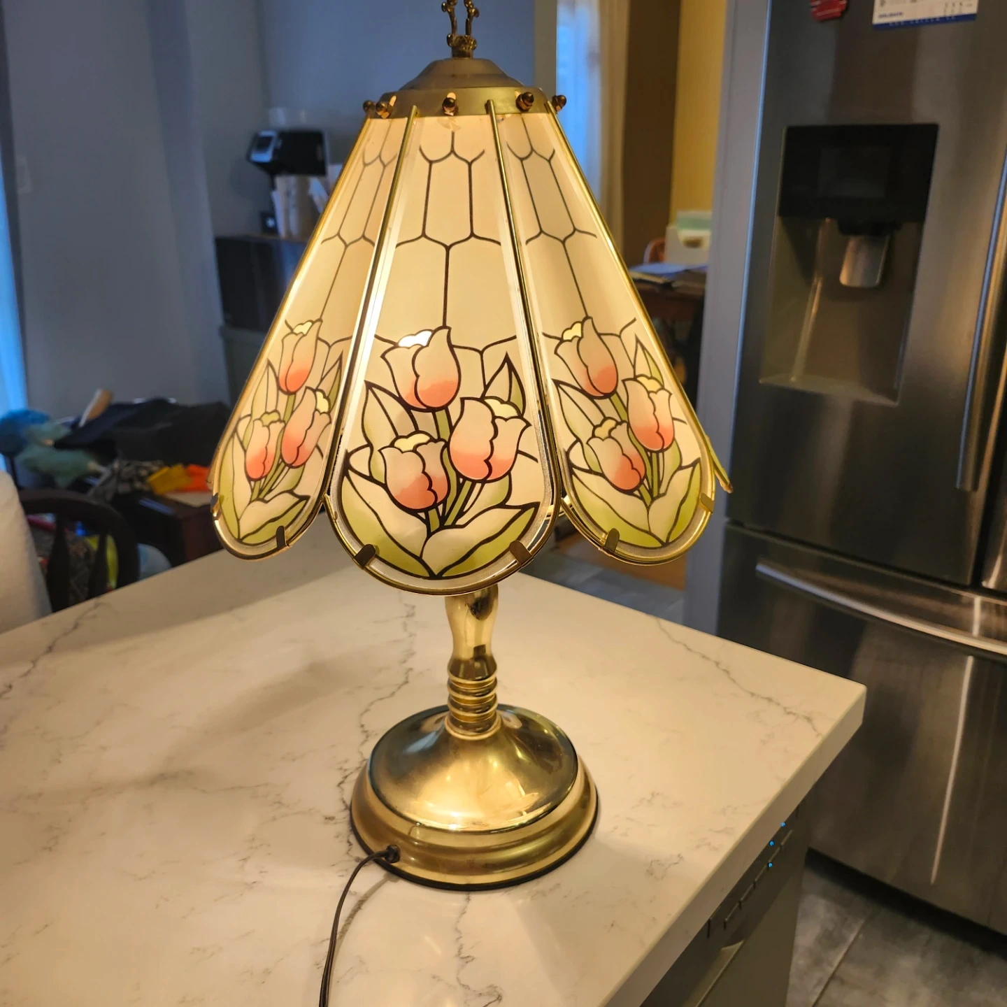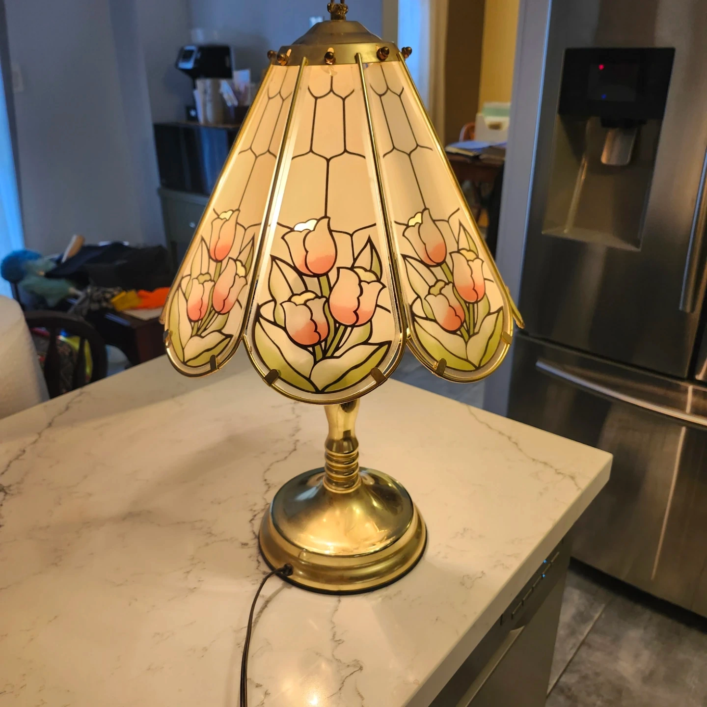 Vintage Tiffany Style Stained Glass Tulip Accent Lamp