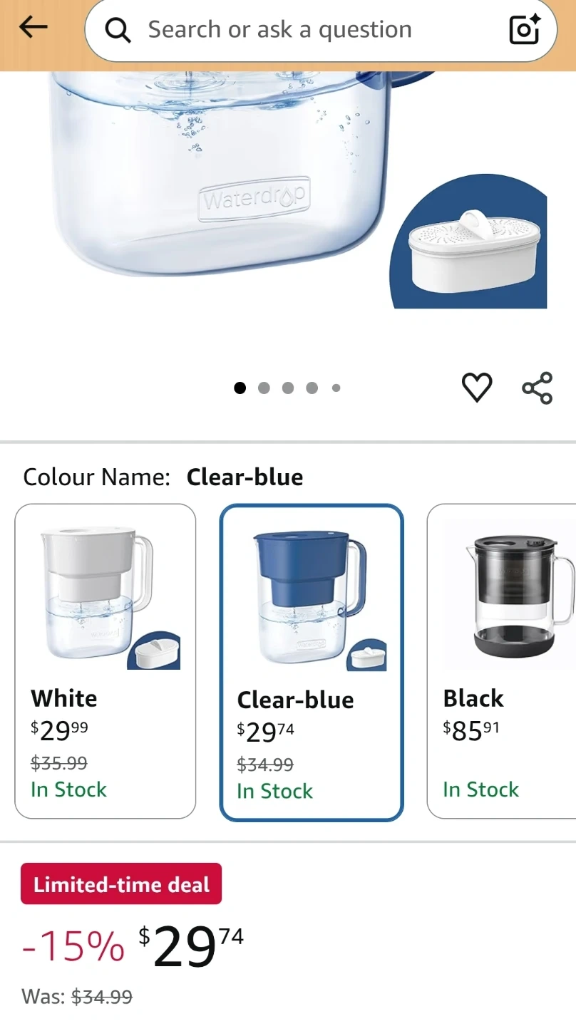 This Waterdrop Lucid pitcher filtration system comes in a 10 cup capacity.