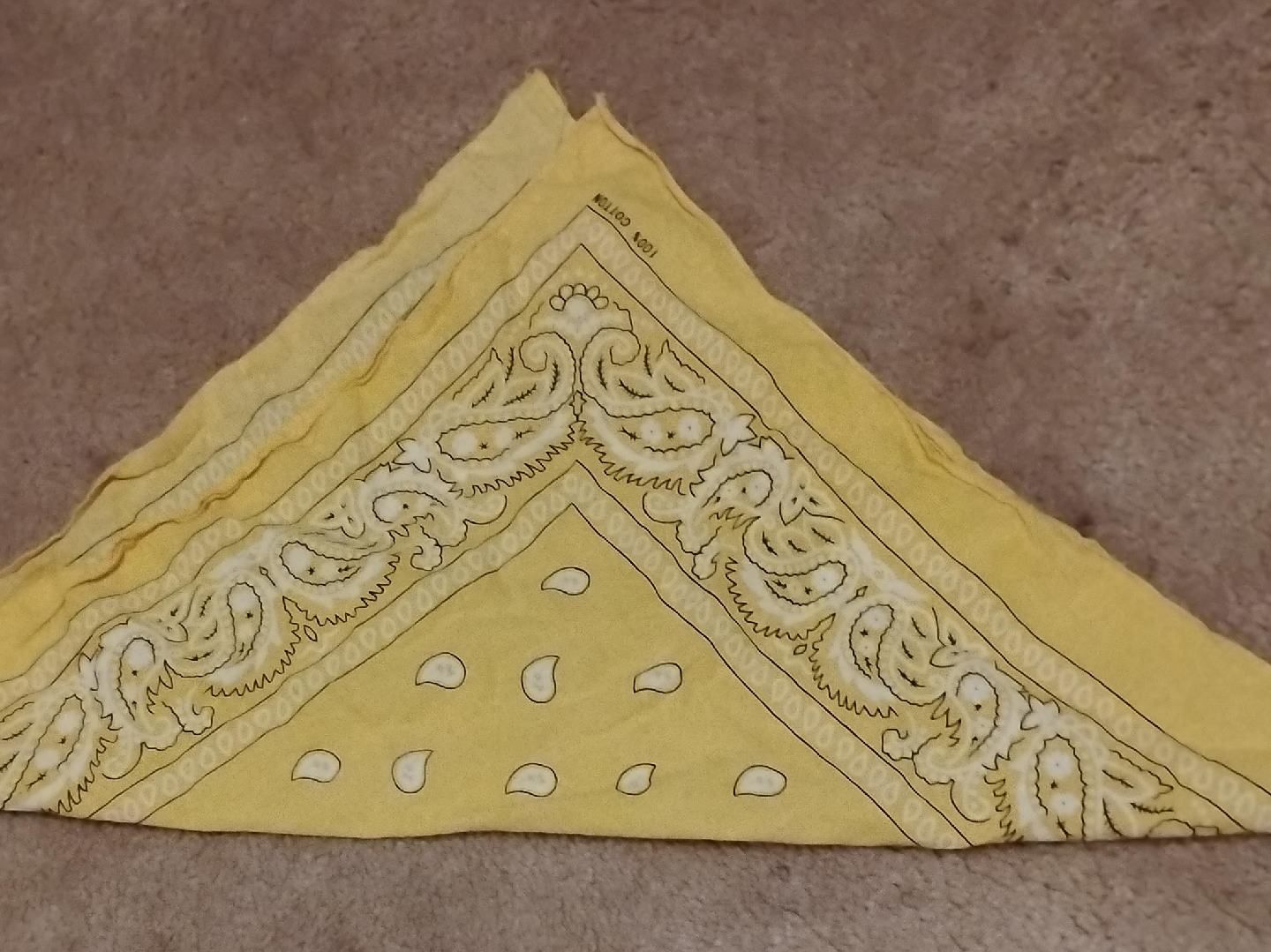 15Selling a yellow cotton bandana. It's in great condition and ready for a new home! Perfect for adding a pop of colour to your outfit or for practical use