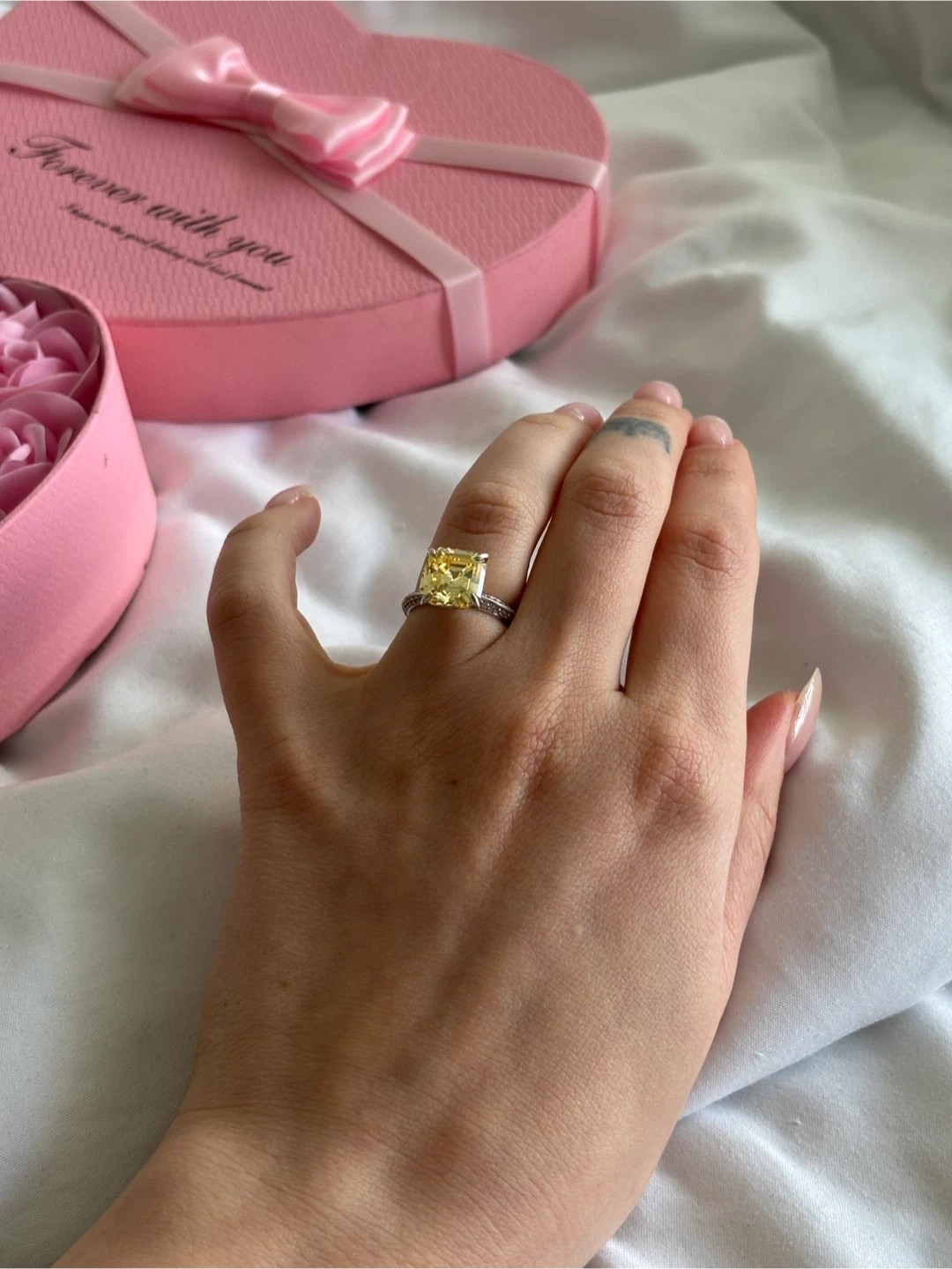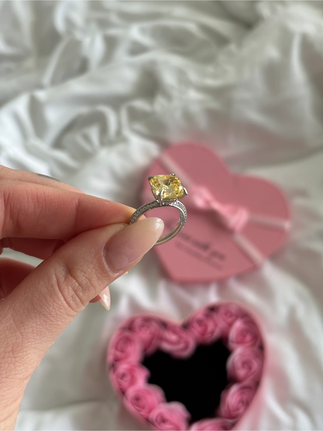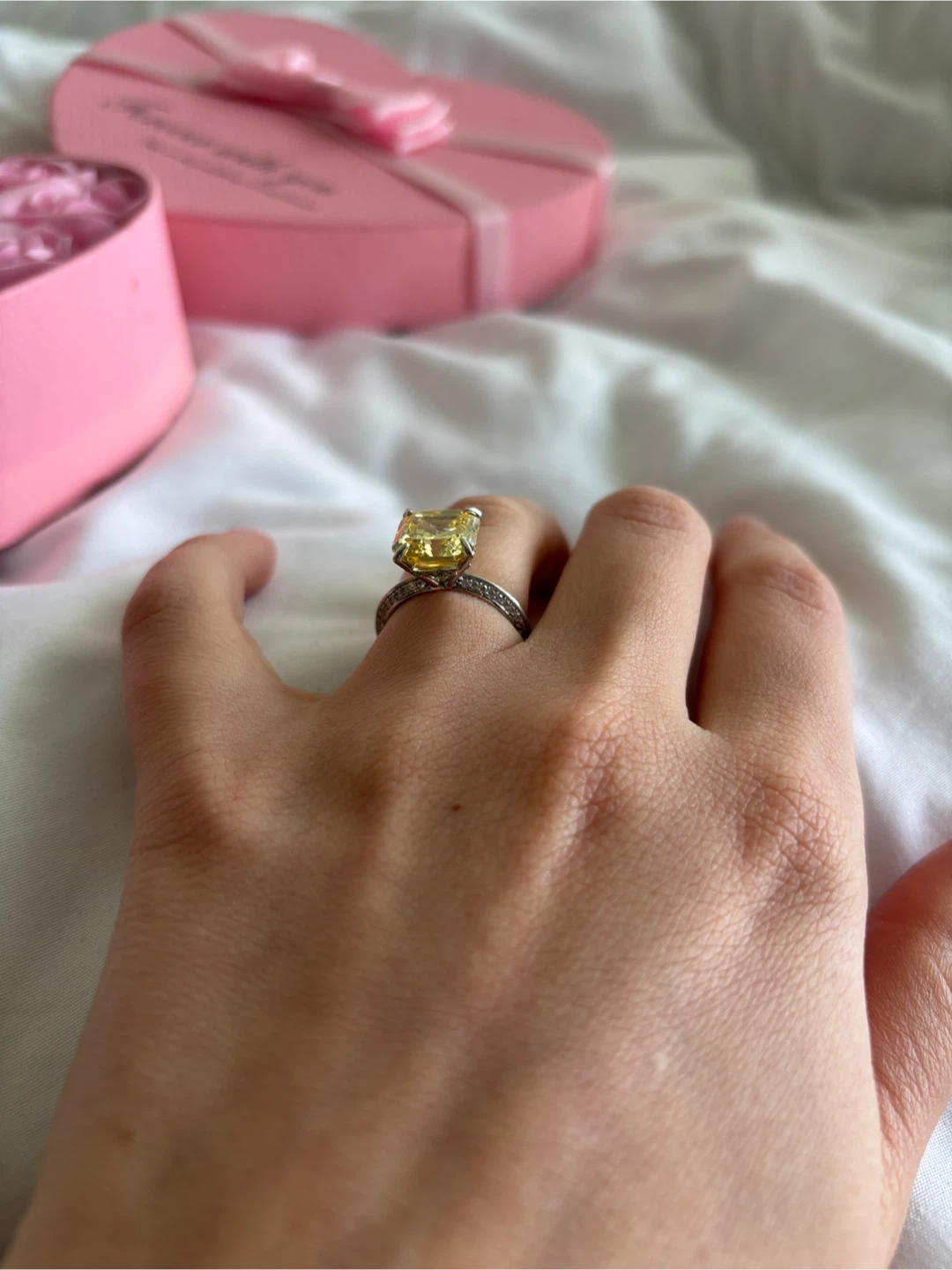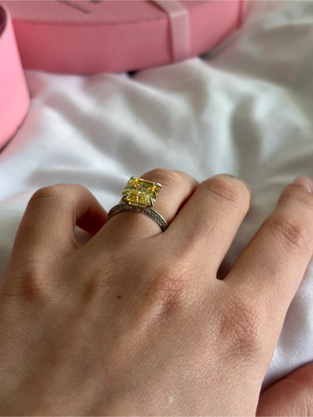45Selling a beautiful ring with a yellow cushion-cut stone! It's in great condition and ready to add some sparkle to your life, size 6, silver 925, boxes are optional 7$, pick up in New West